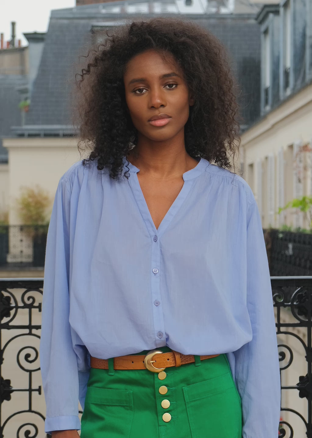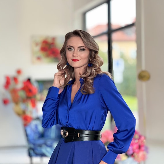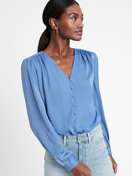 blue v neck blouse