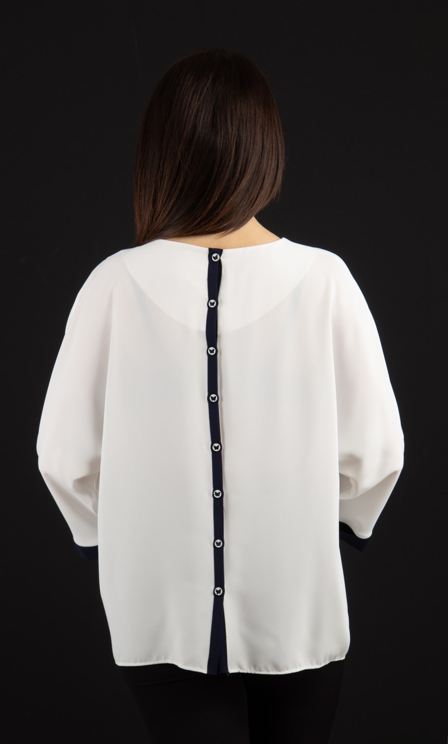 boat neck back button blouse