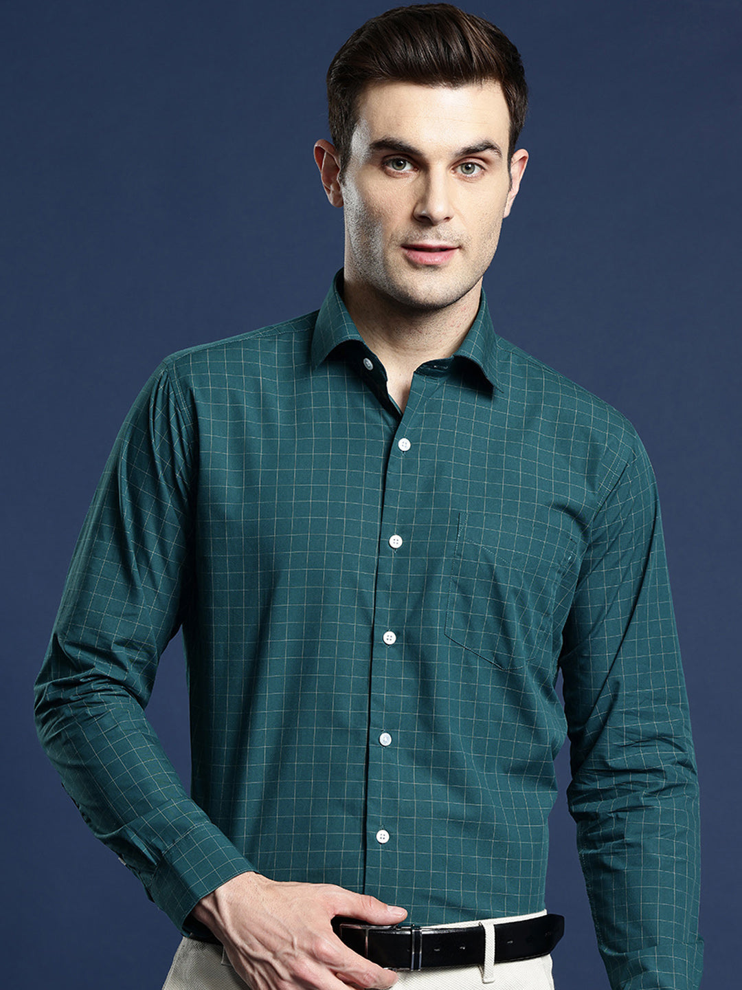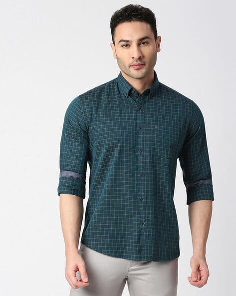 bottle green check shirt