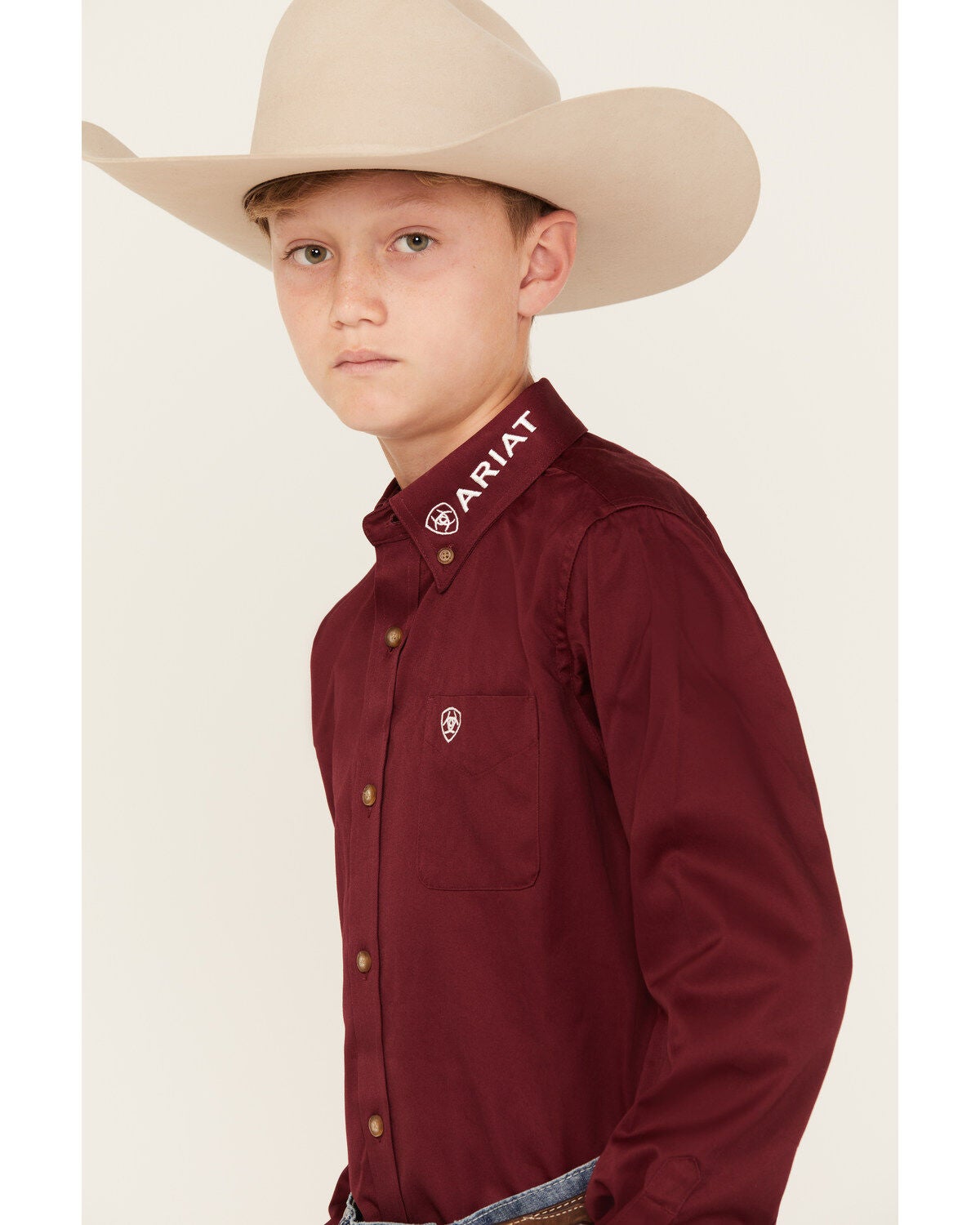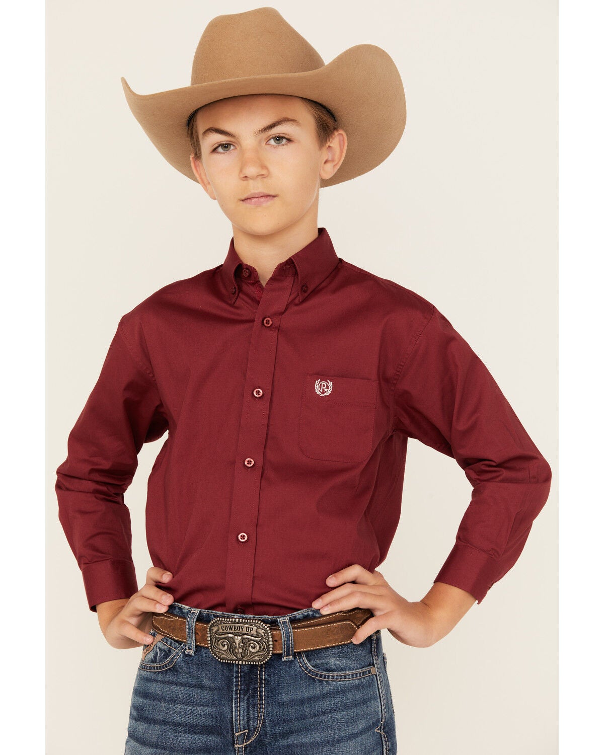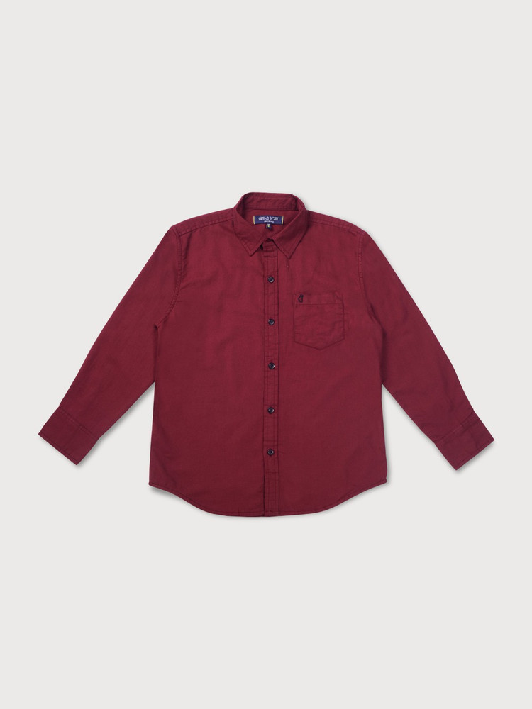 boys burgundy button down