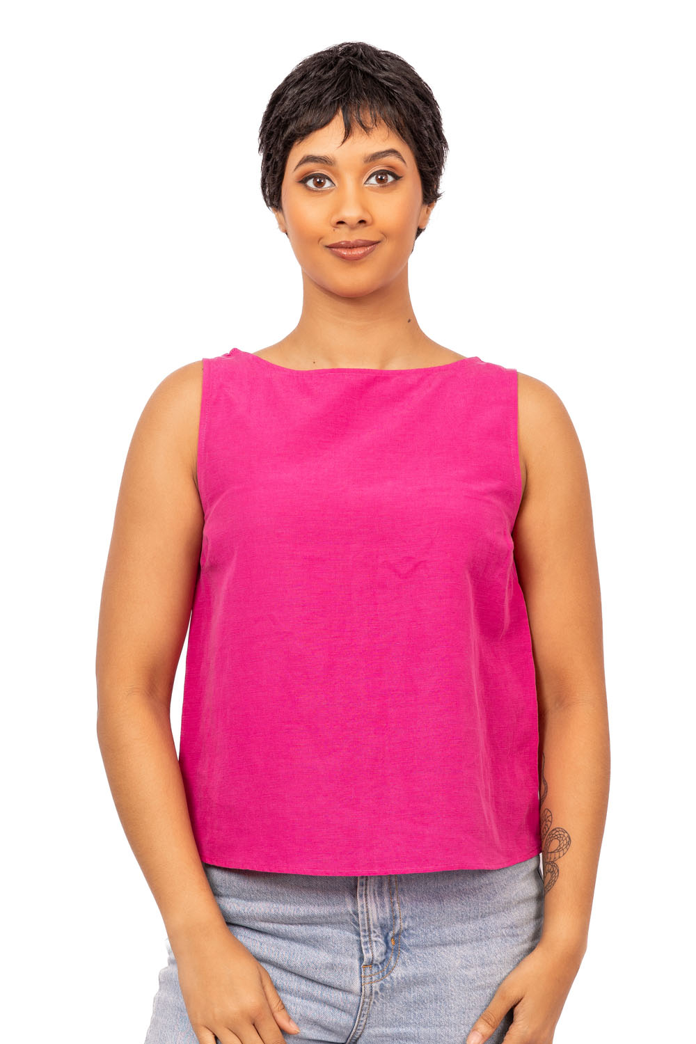 bright pink sleeveless top