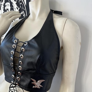 brown leather halter top