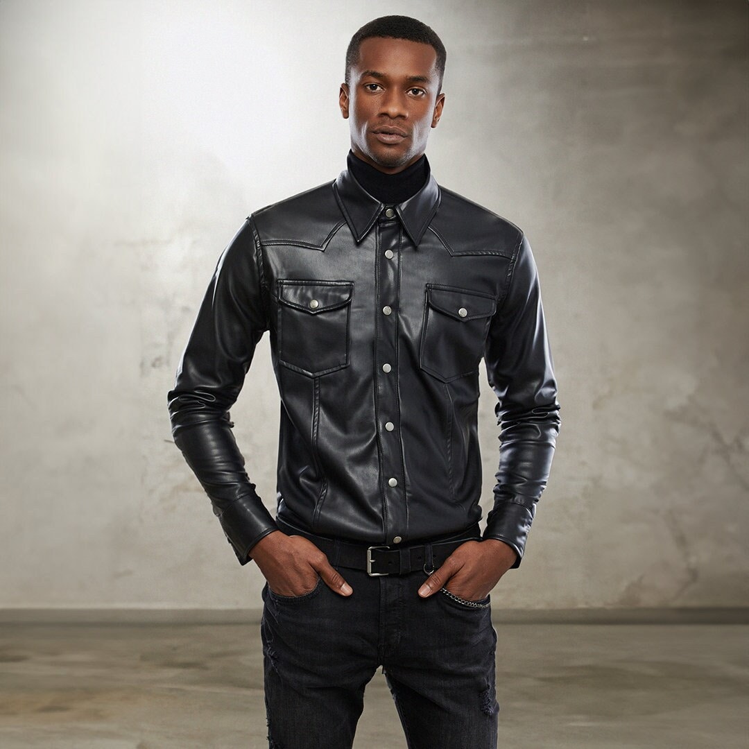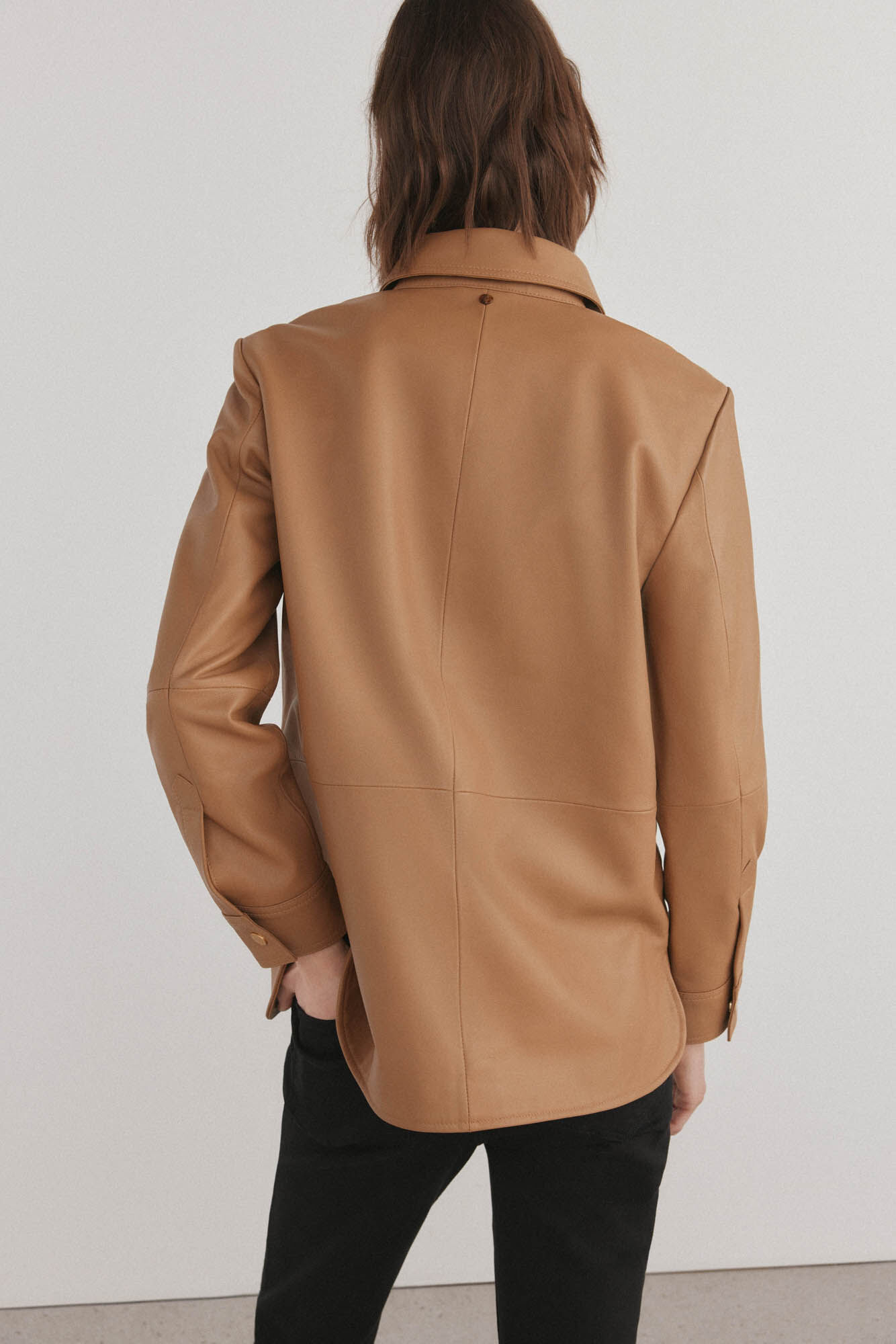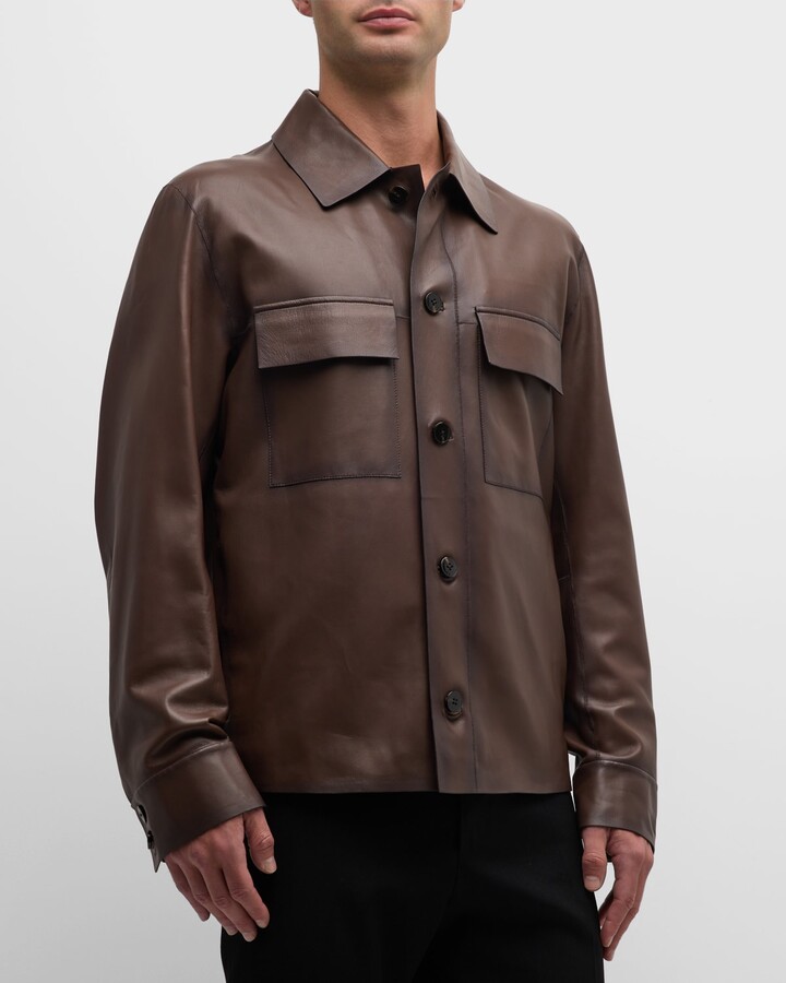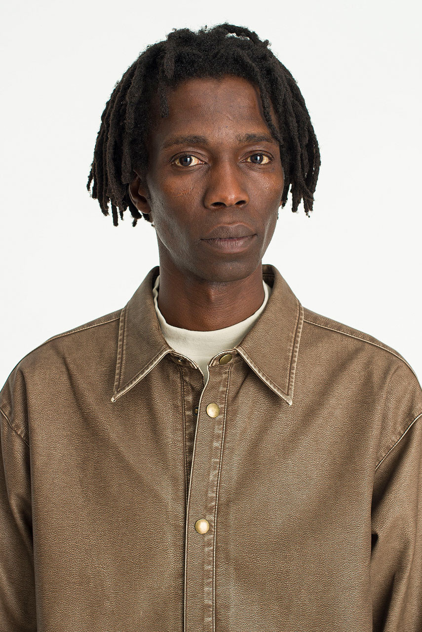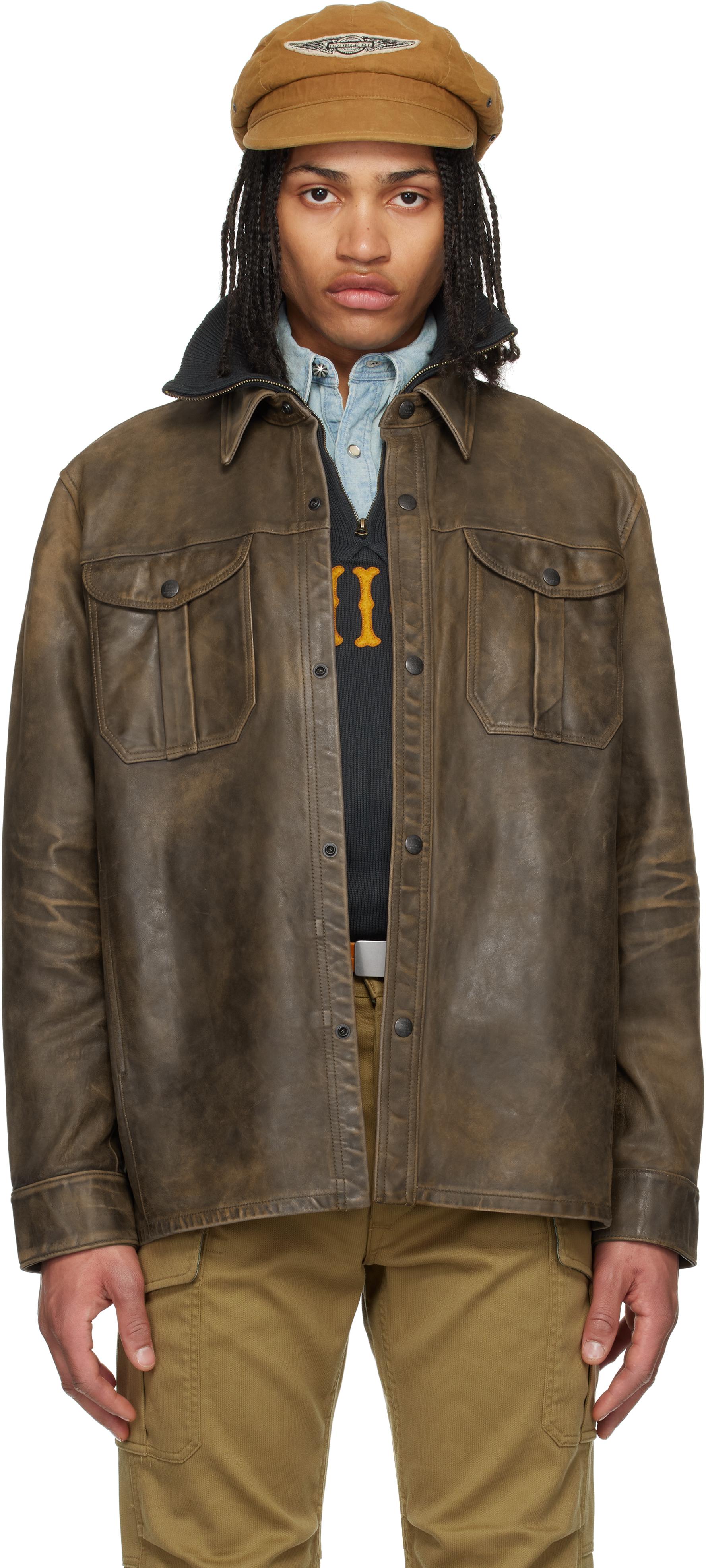 brown leather overshirt