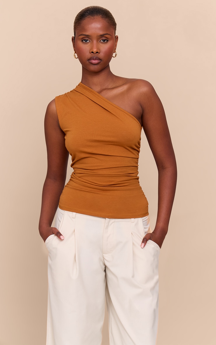 brown one sleeve top