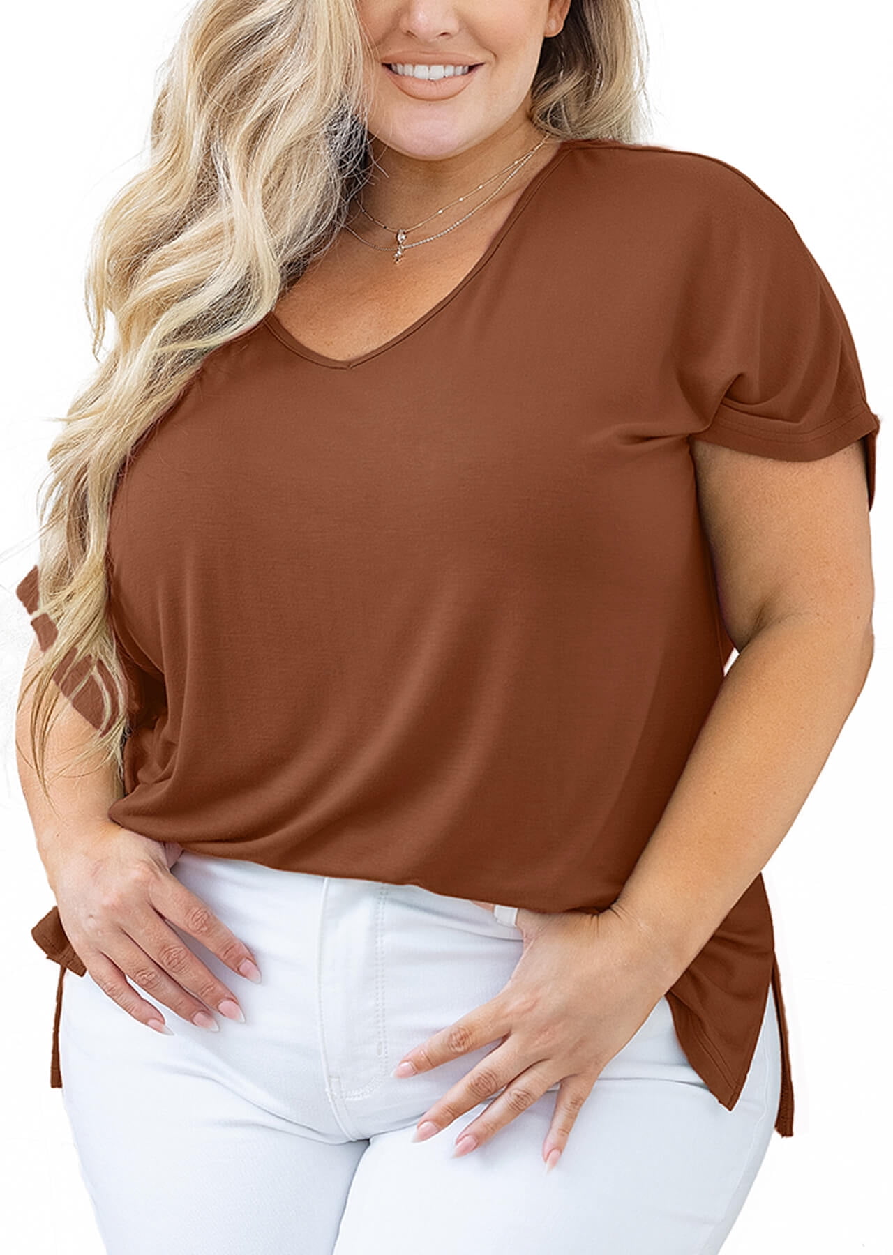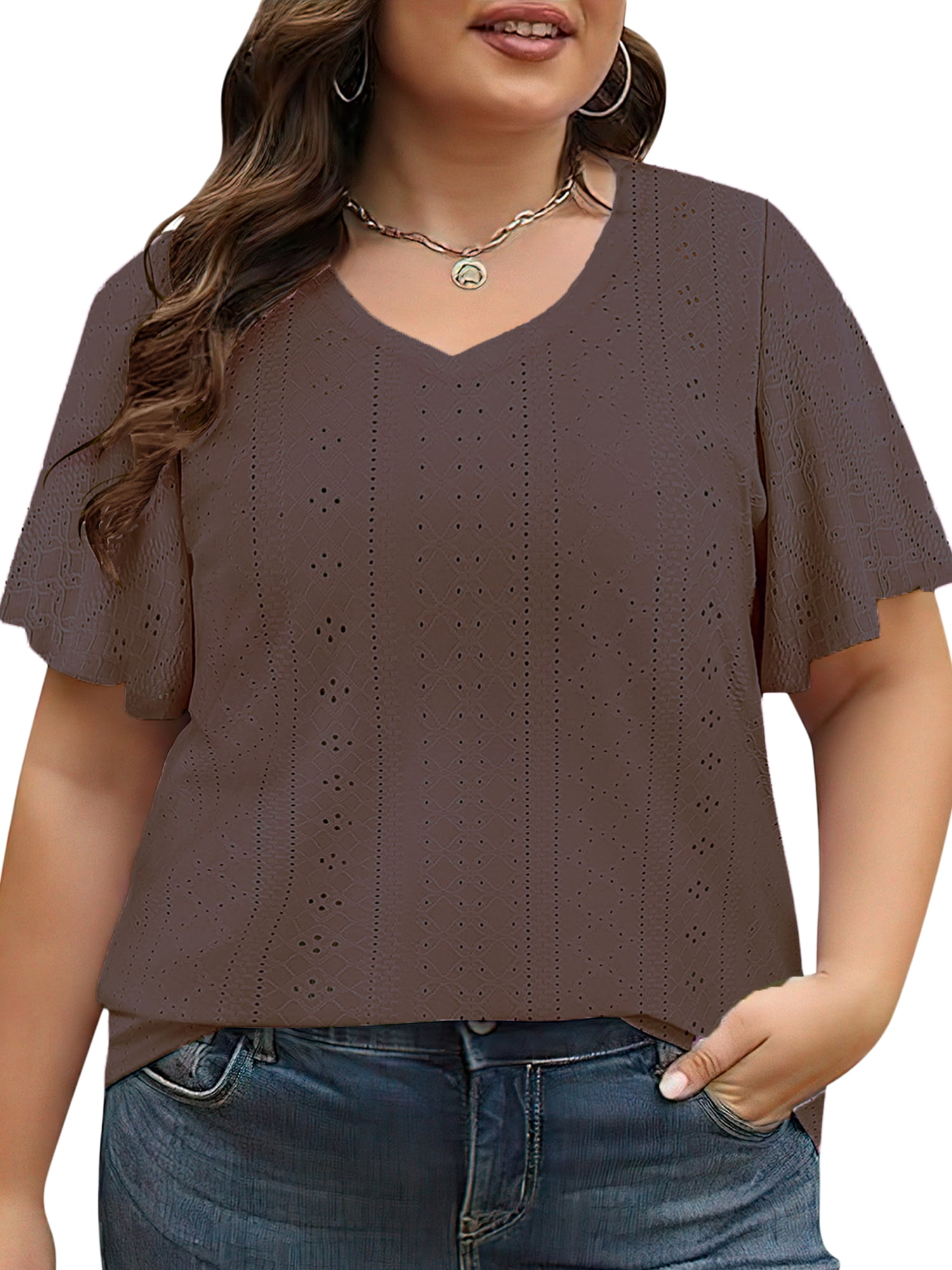 brown plus size tops