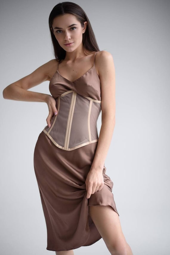 brown satin underbust halter top