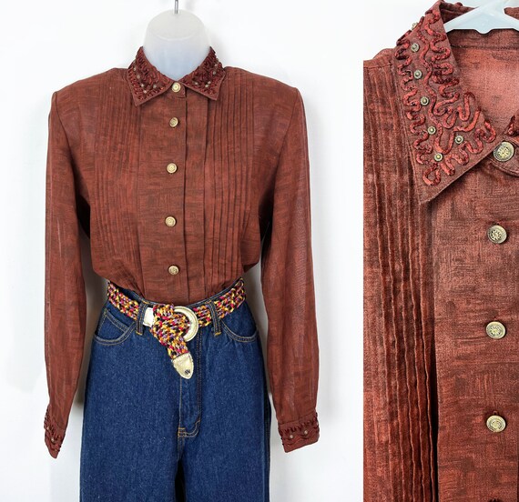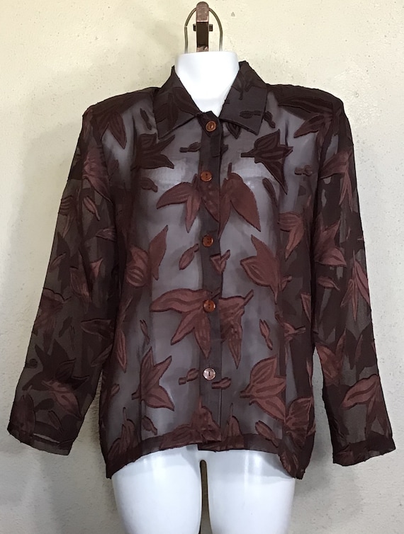brown sheer button up blouse