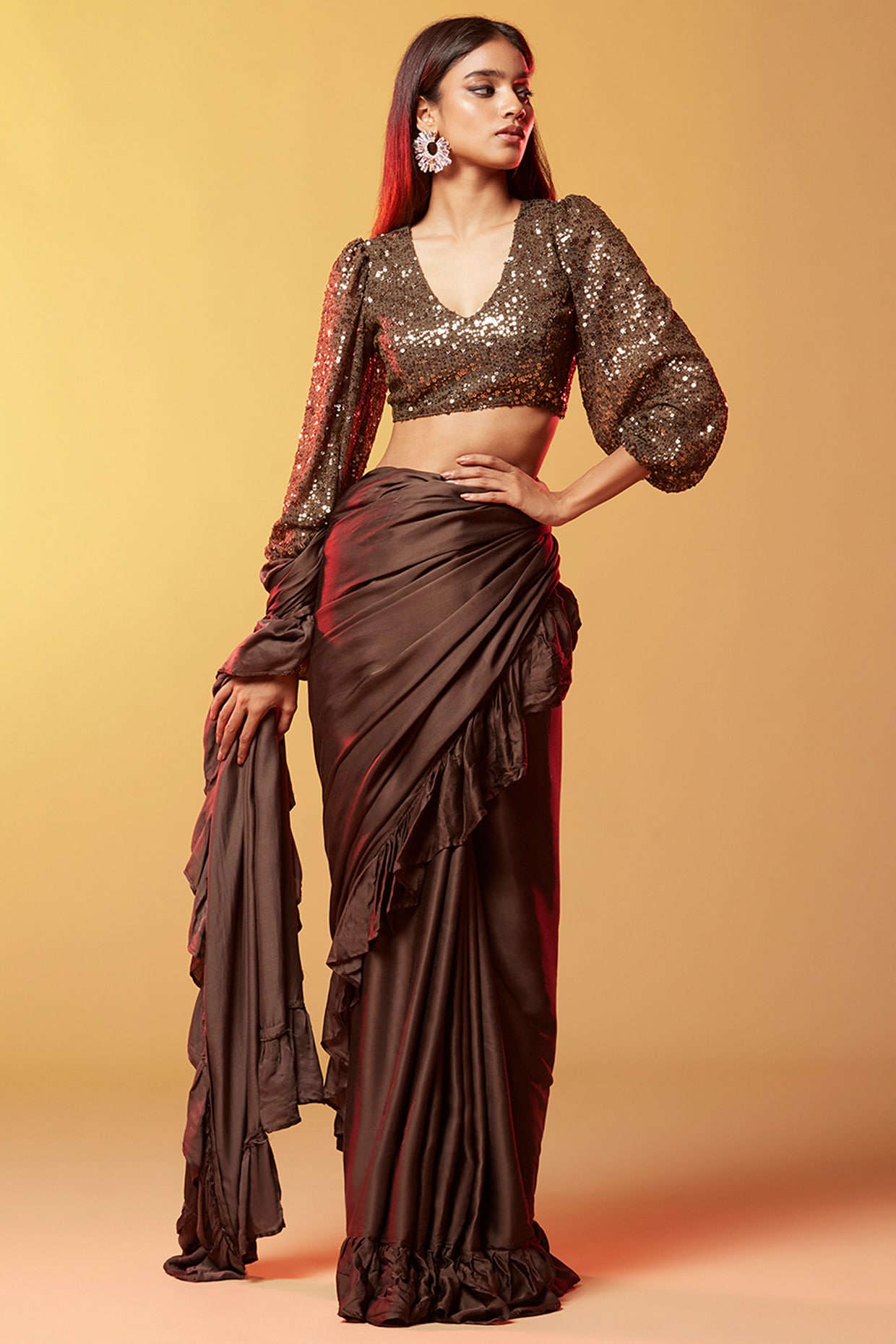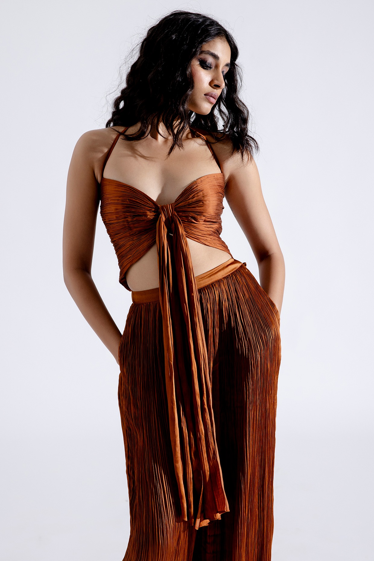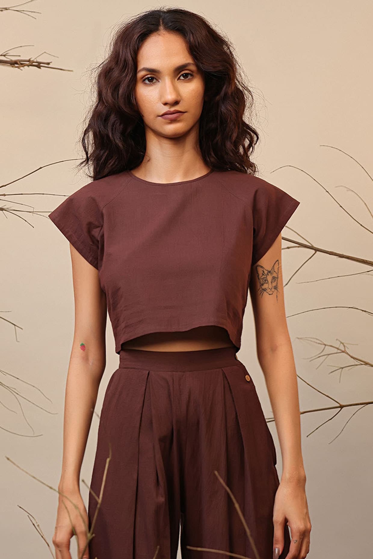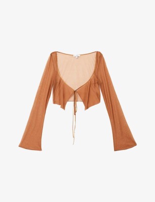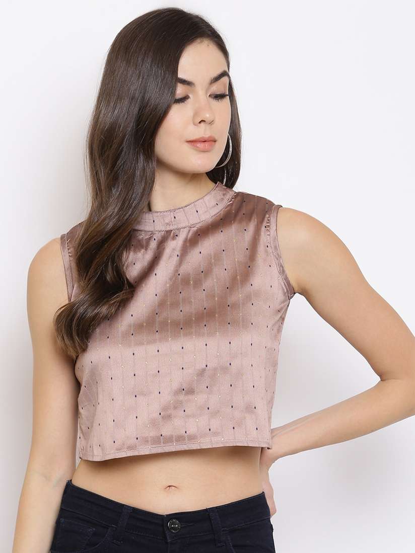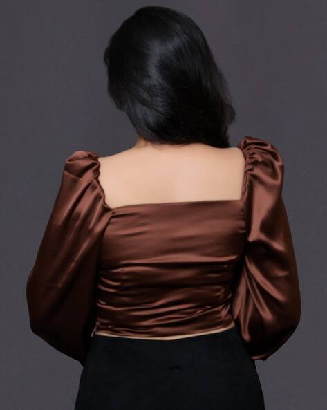 brown silk crop top