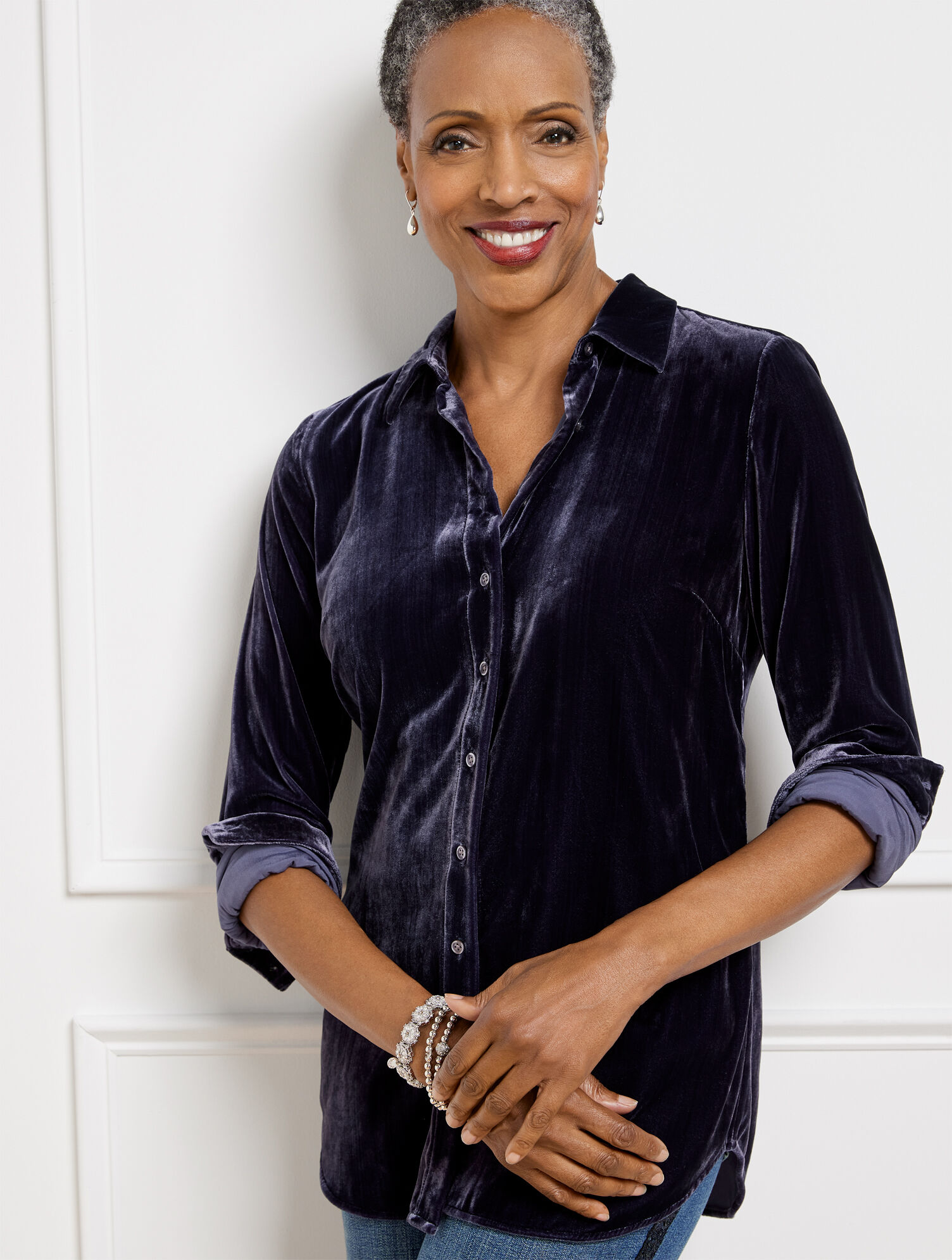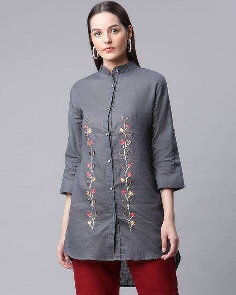 button front tunic tops