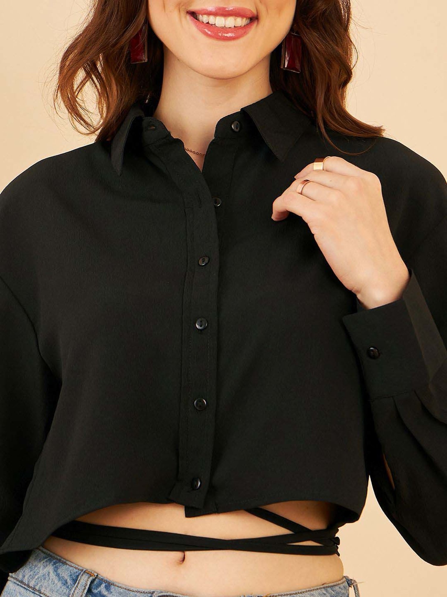 button up black crop top