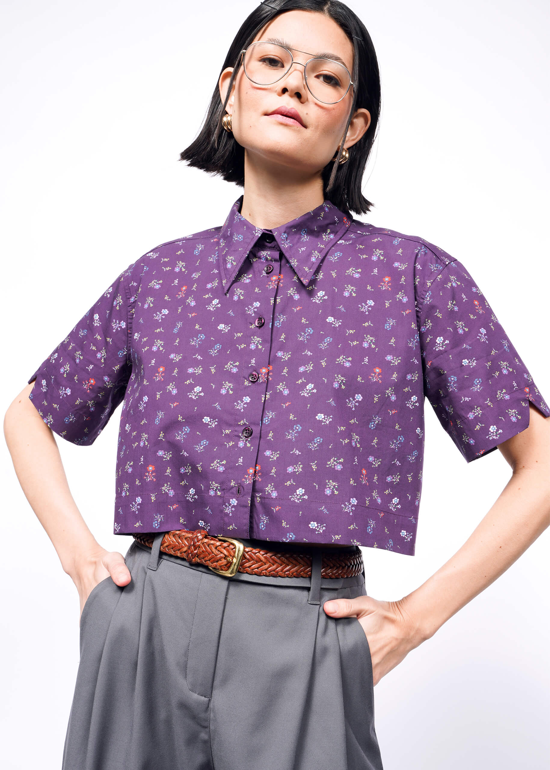button up crop tee