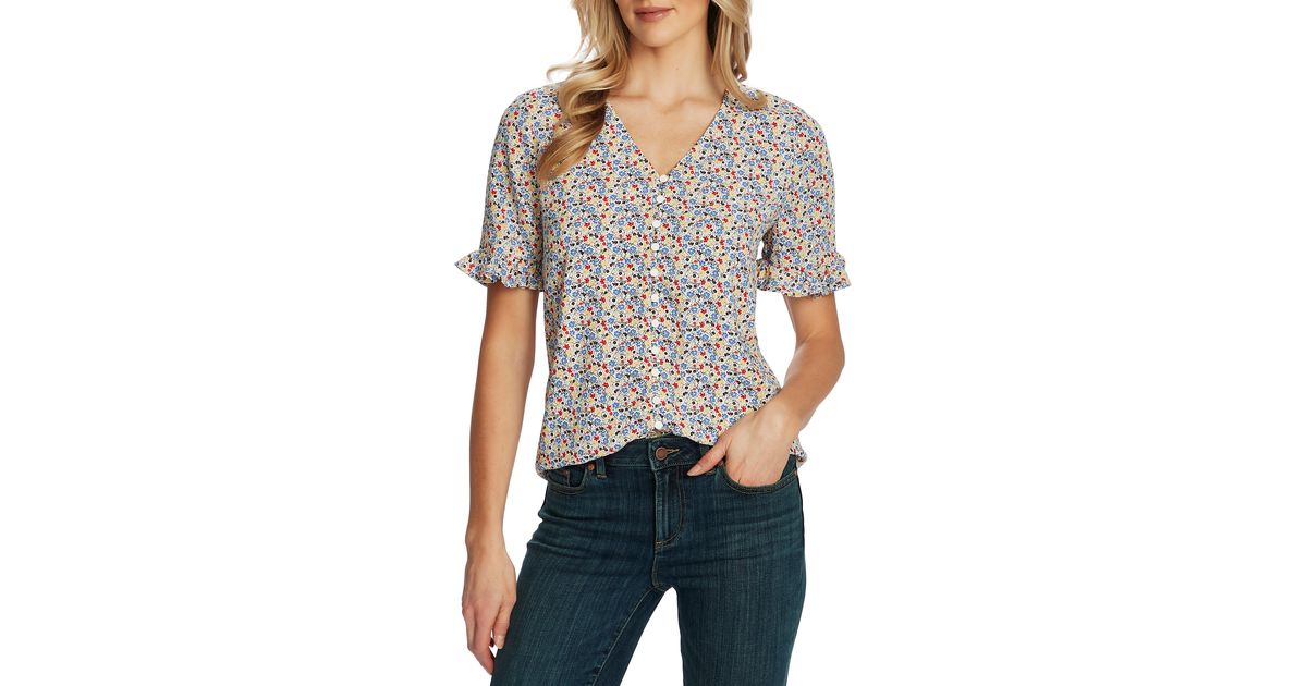 cece ruffle moroccan ditsy blouse