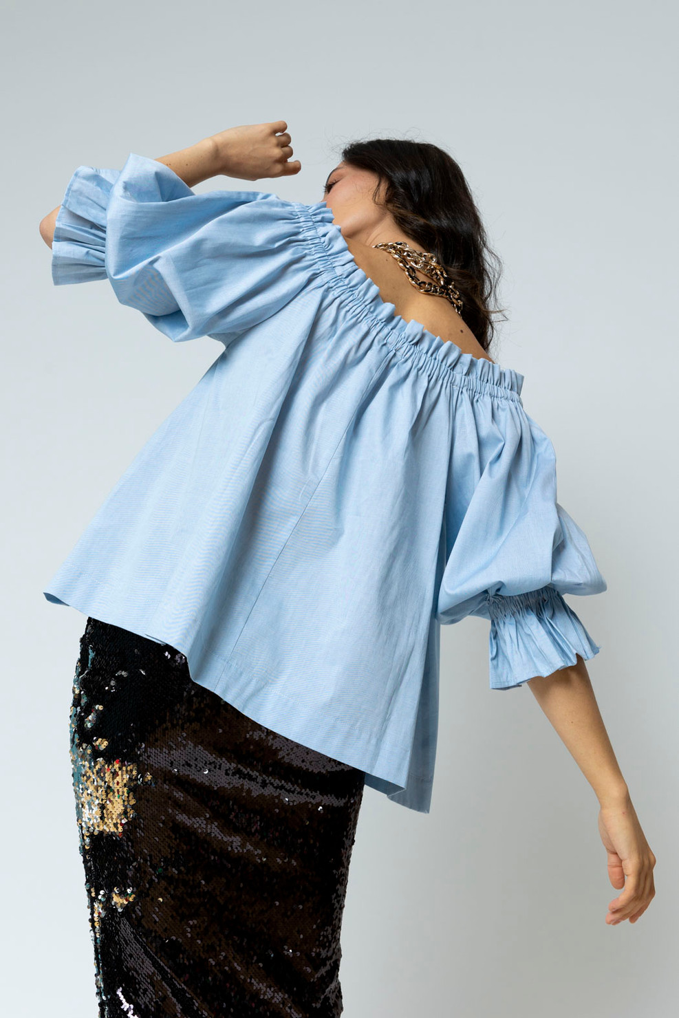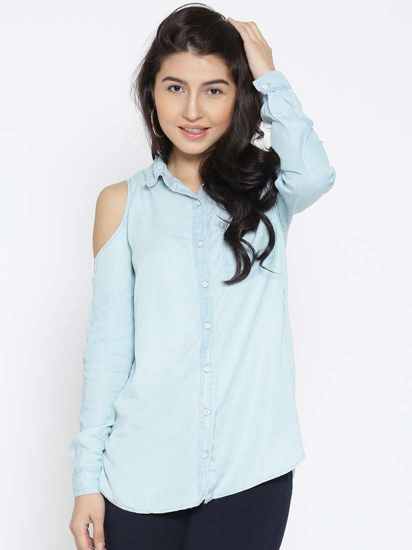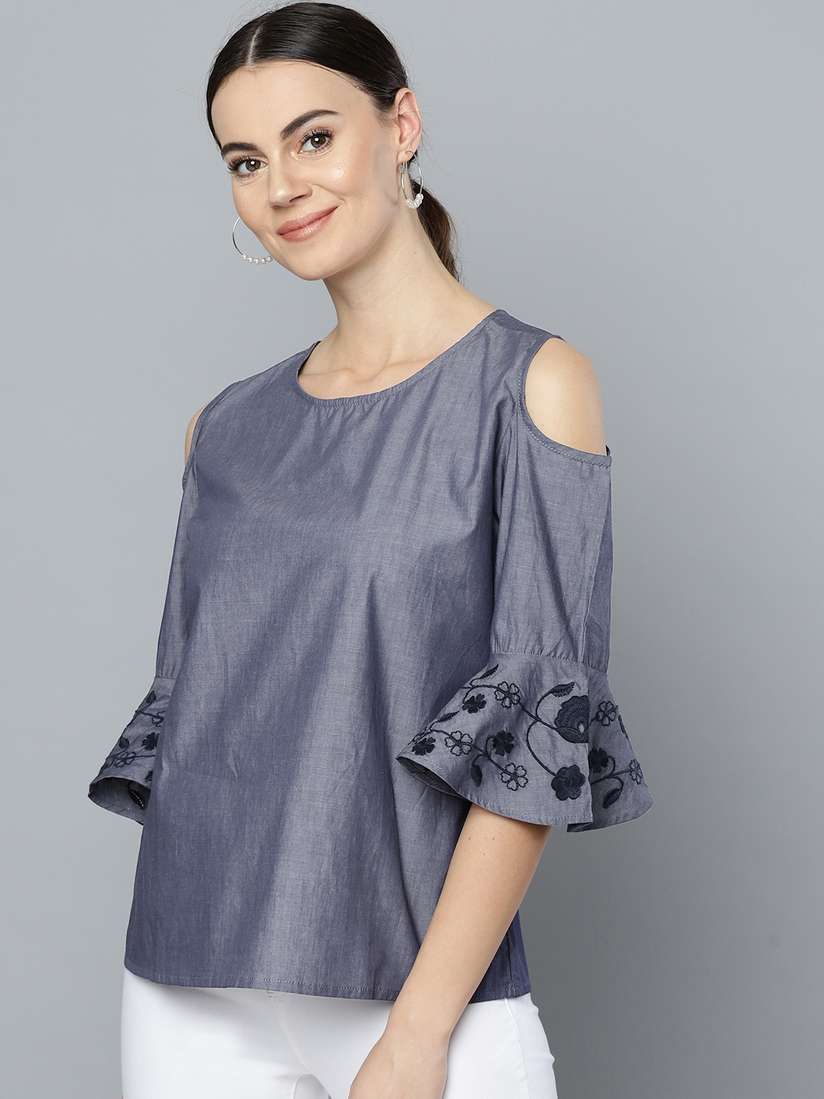 chambray cold shoulder top