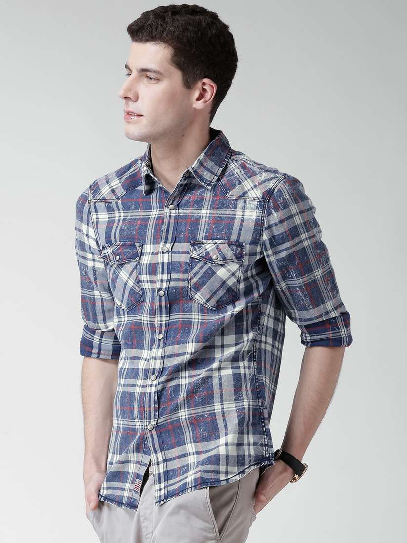 checked denim shirt