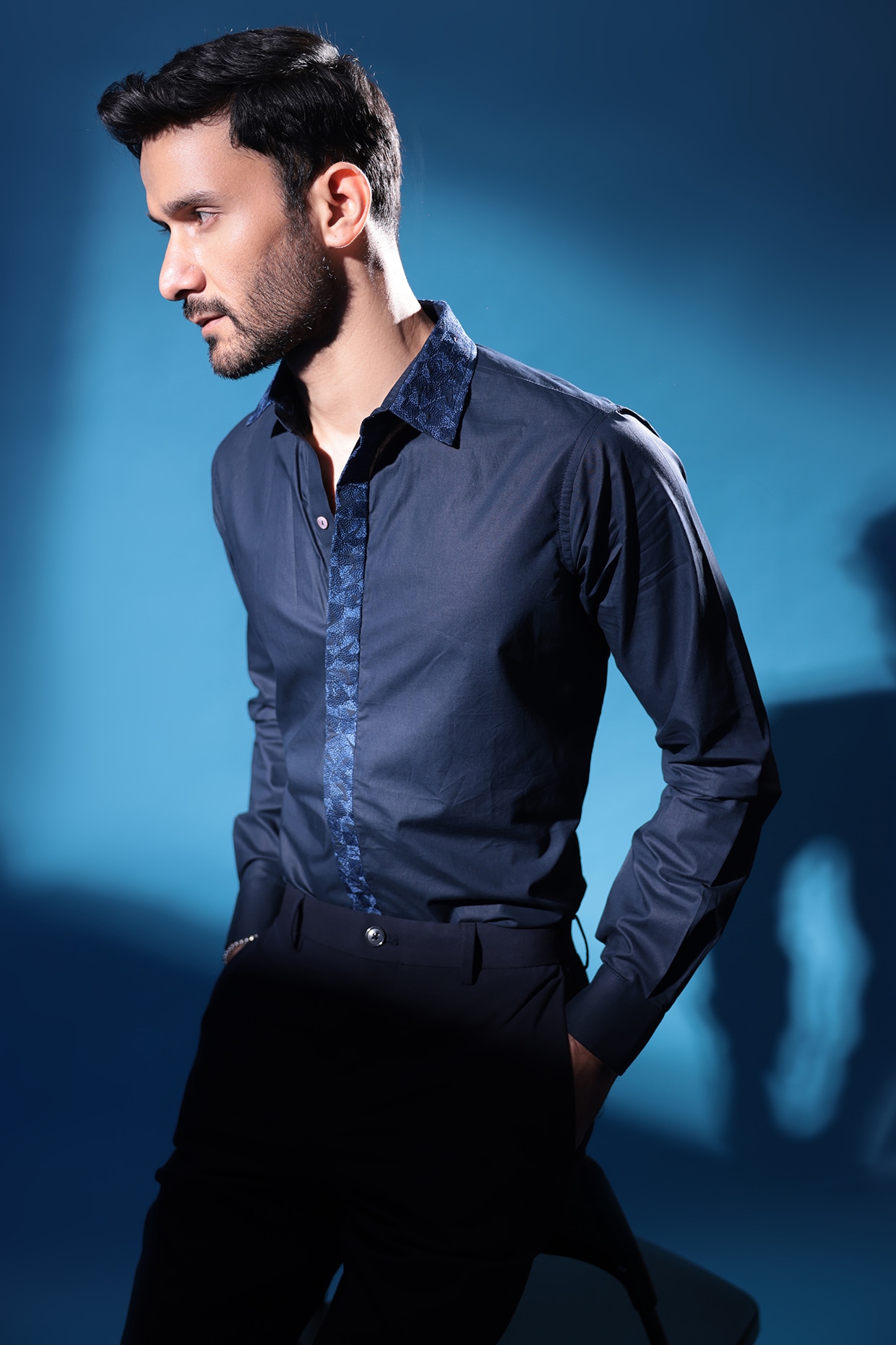 cobalt blue shirt