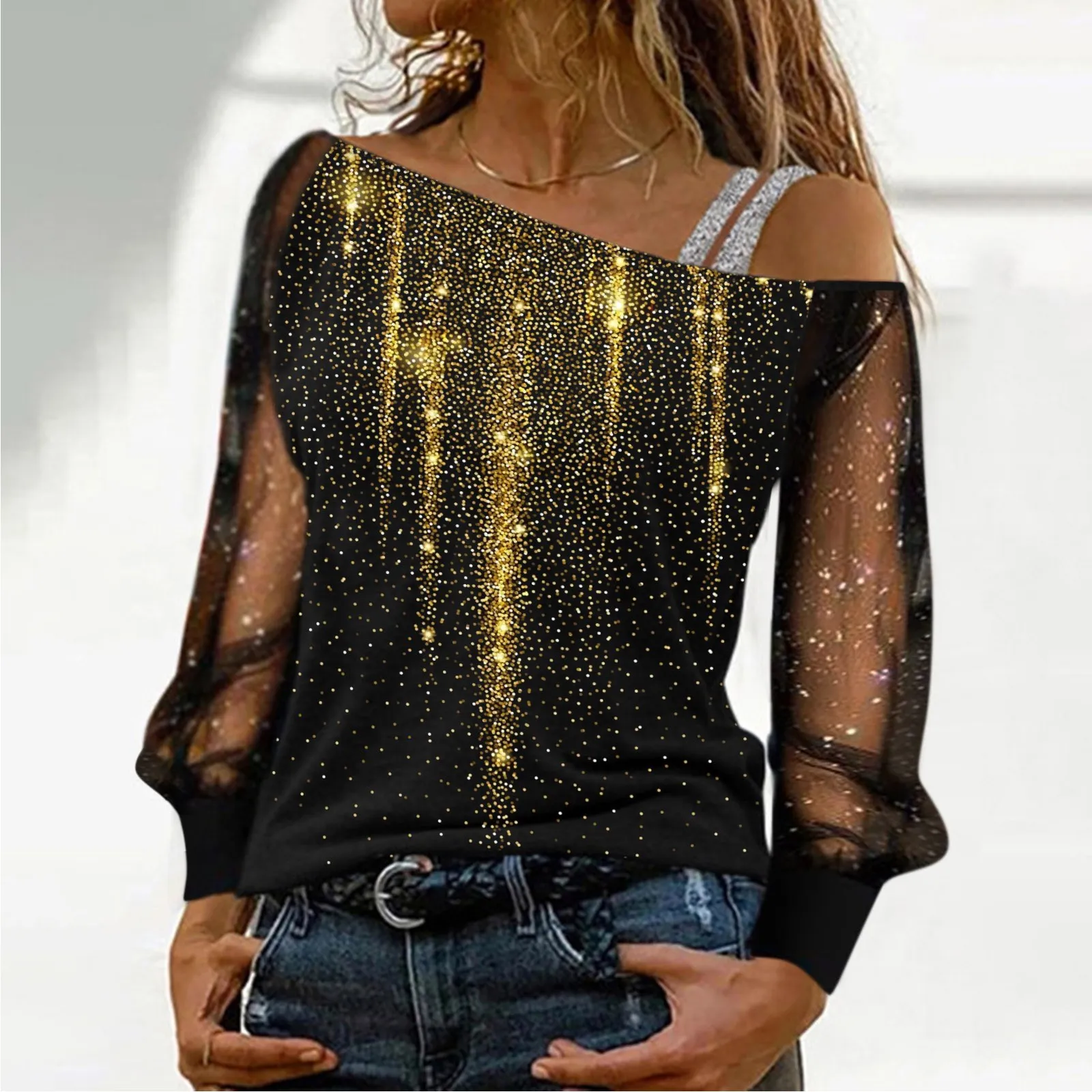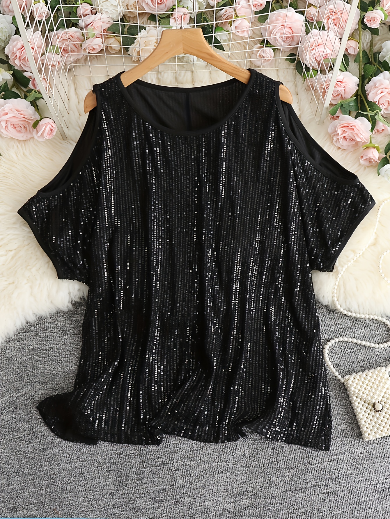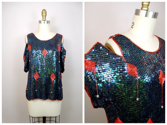 cold shoulder sequin top