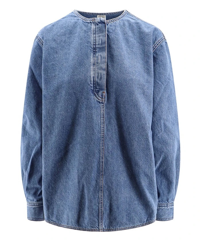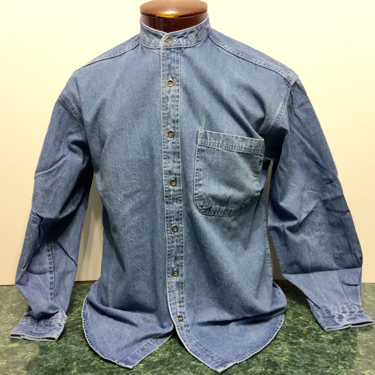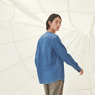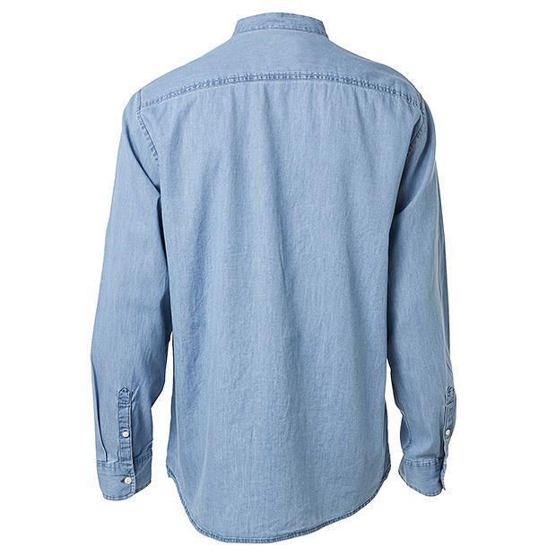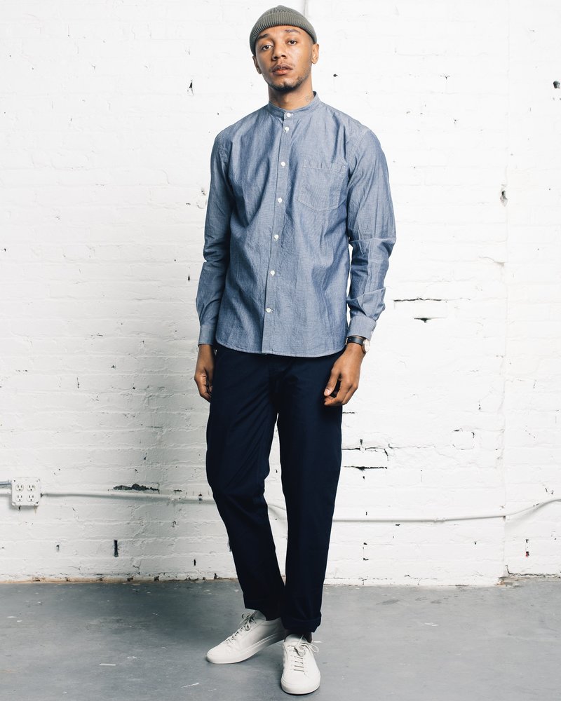 collarless chambray shirt