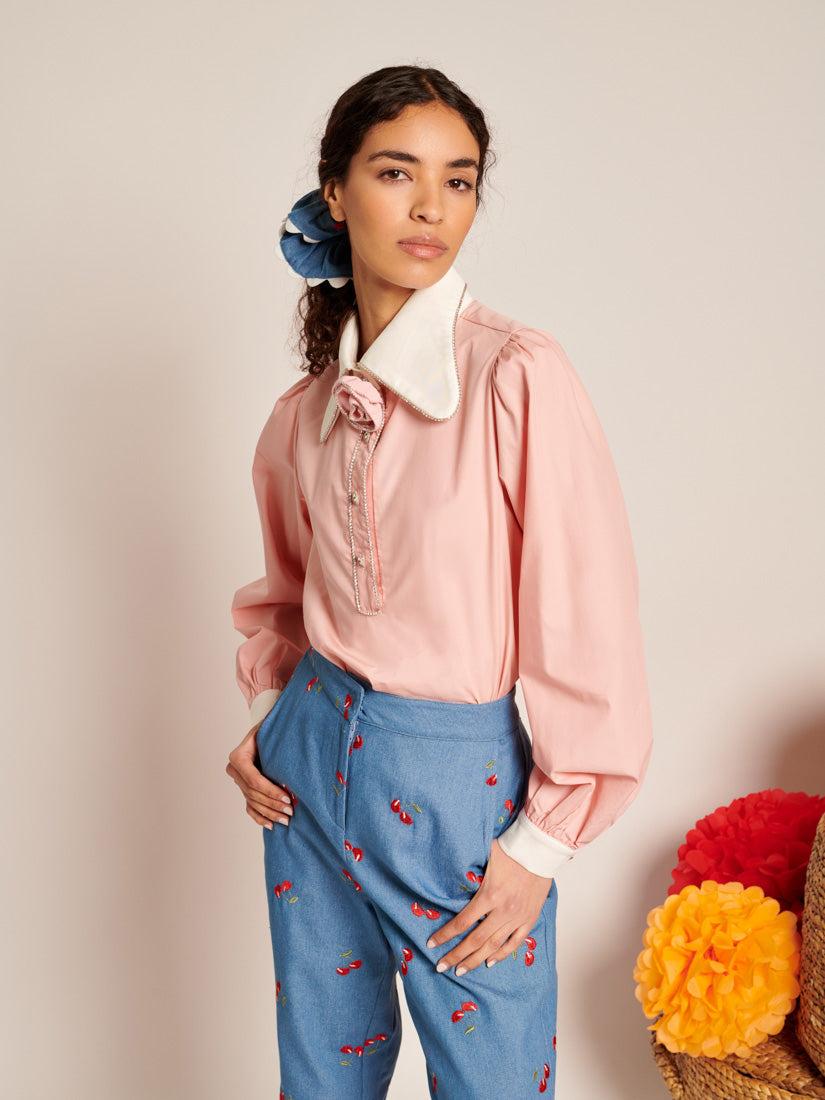 contrast collar blouse
