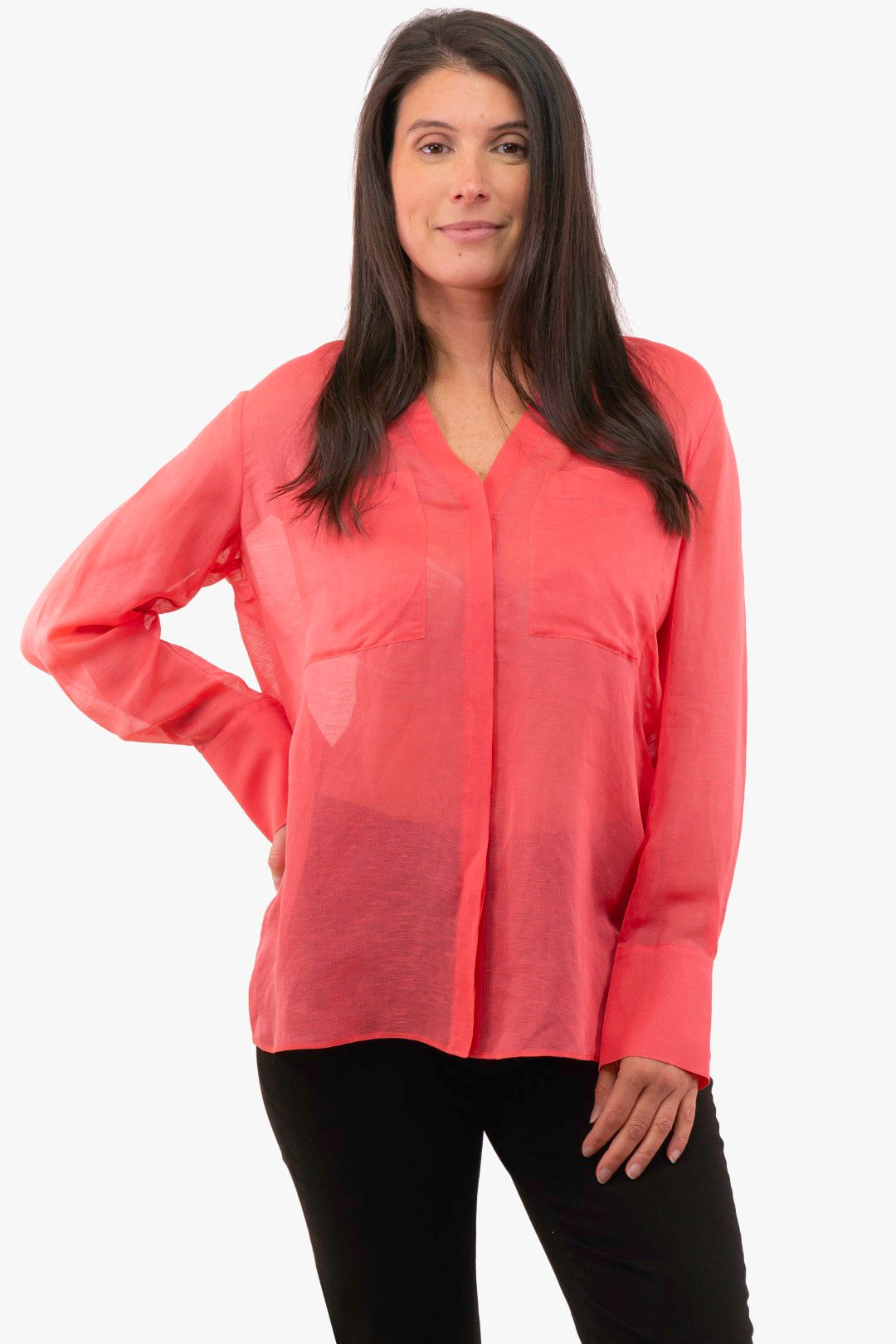 coral pink blouse
