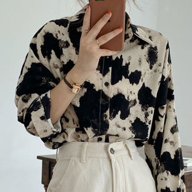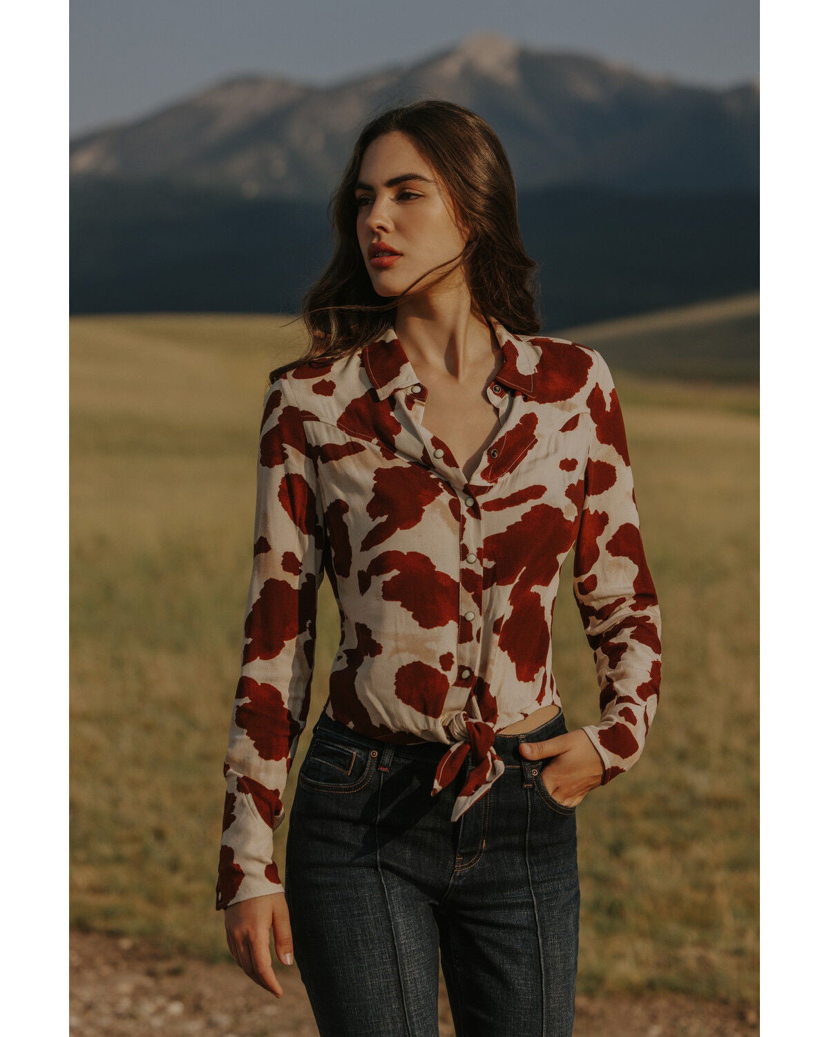 cow print tie front top