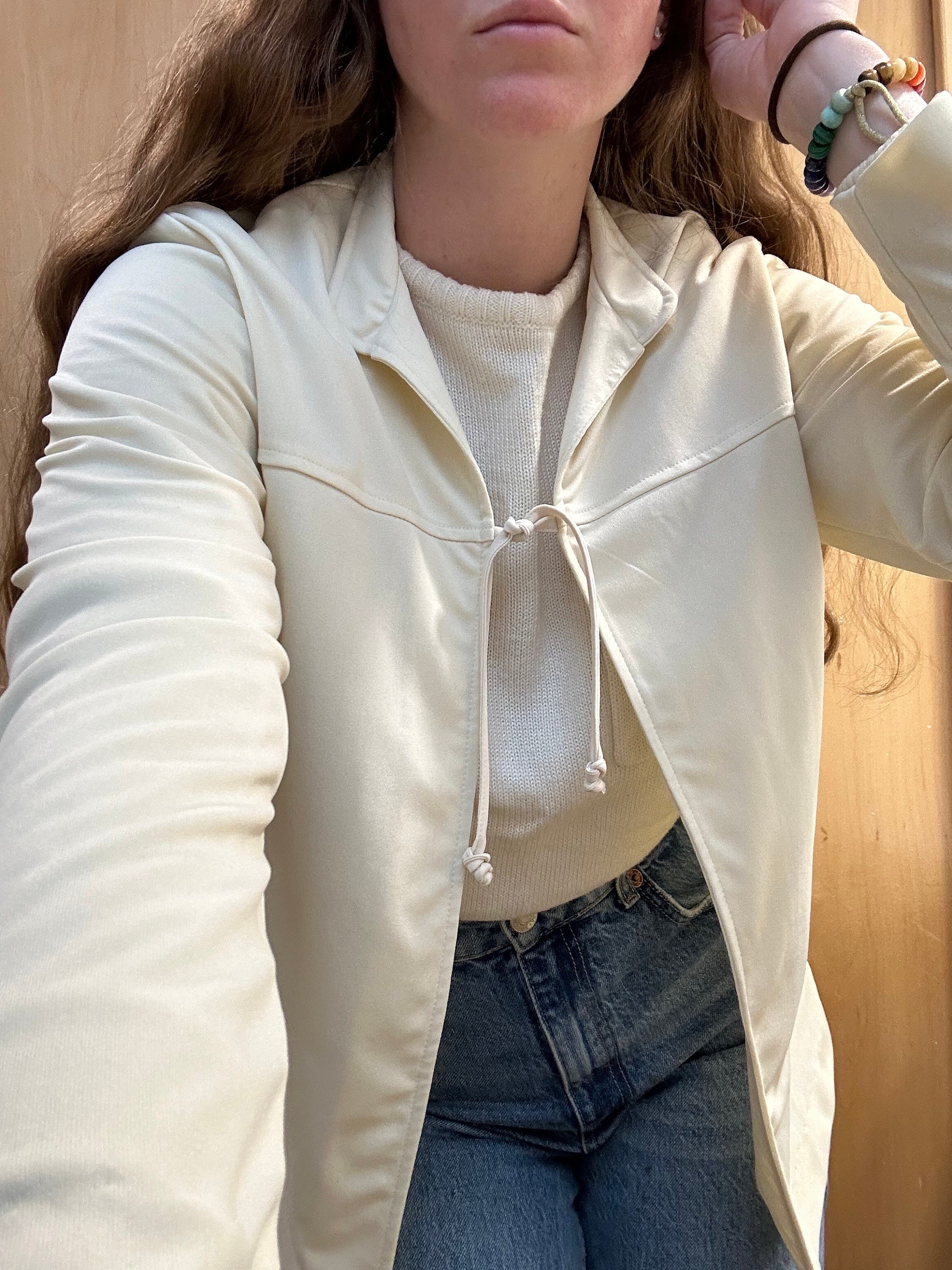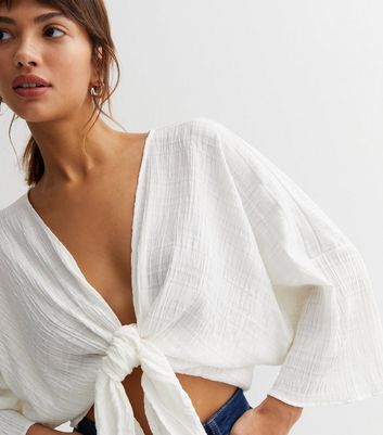 cream tie front top