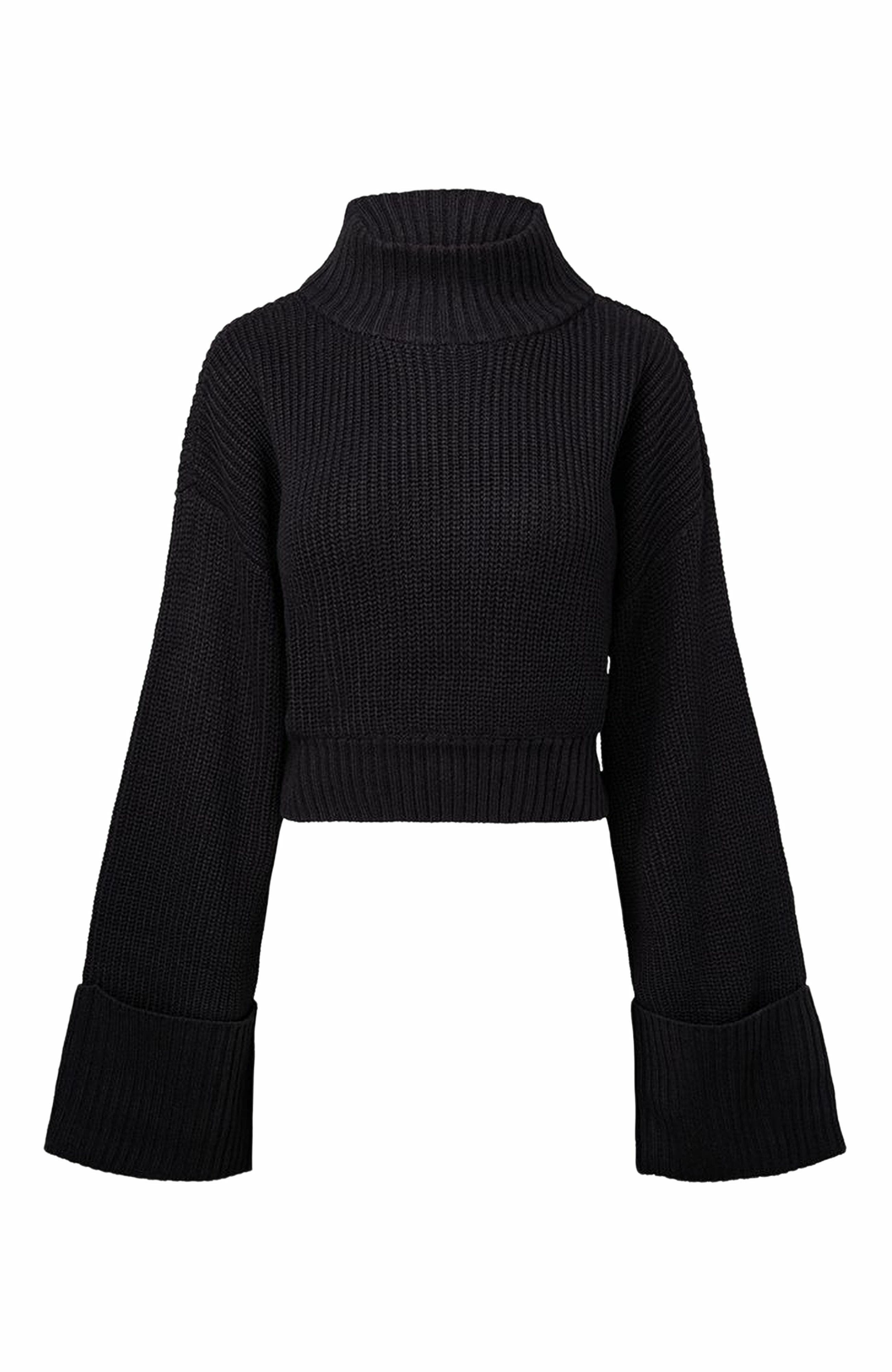 cropped black turtleneck top