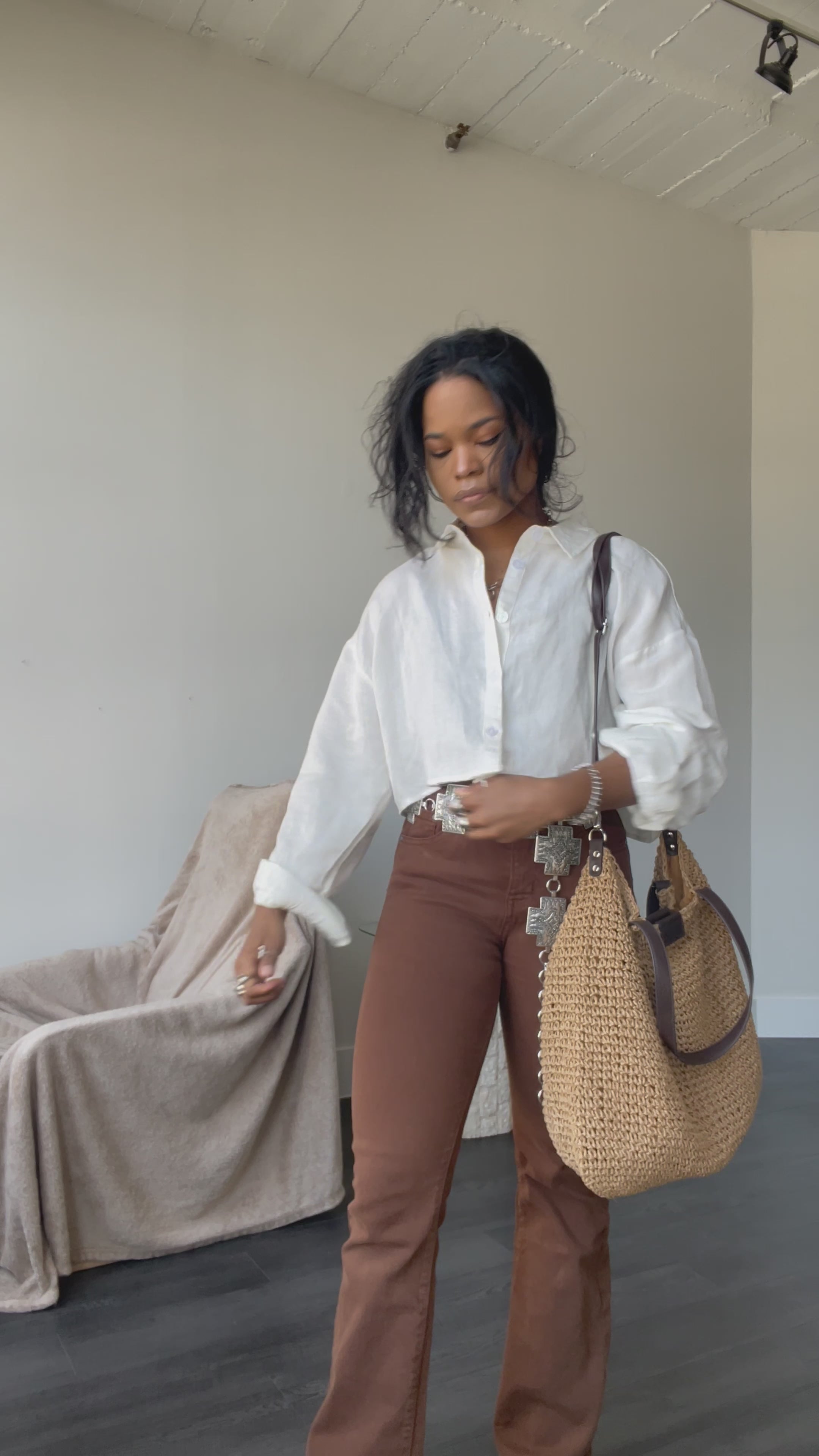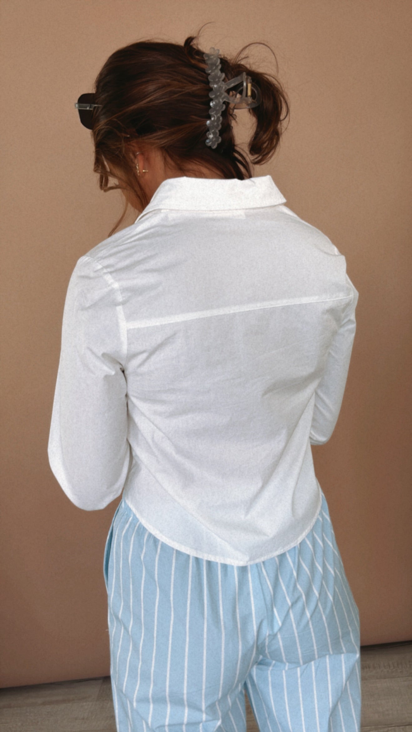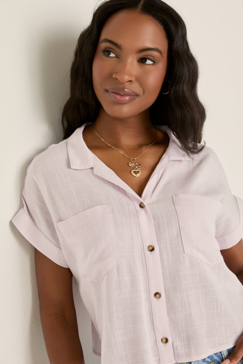 cropped button down top