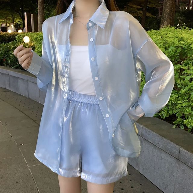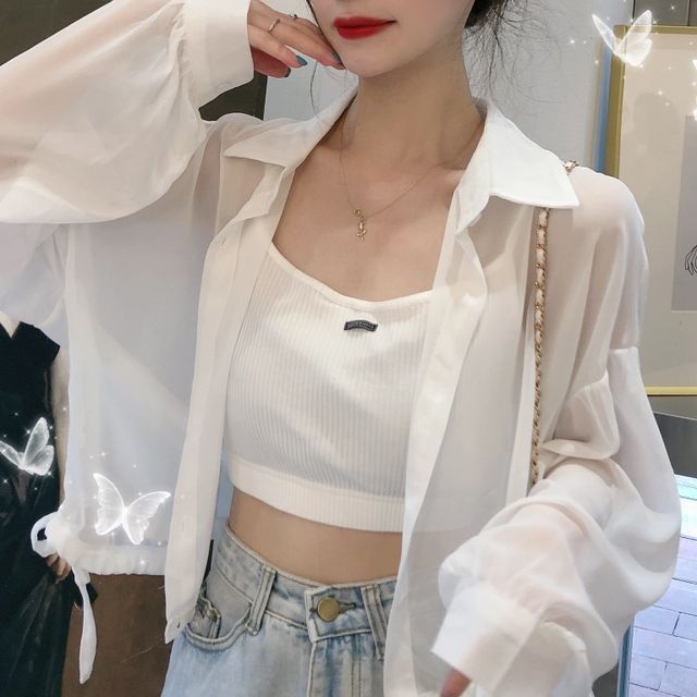 cropped sheer shirt
