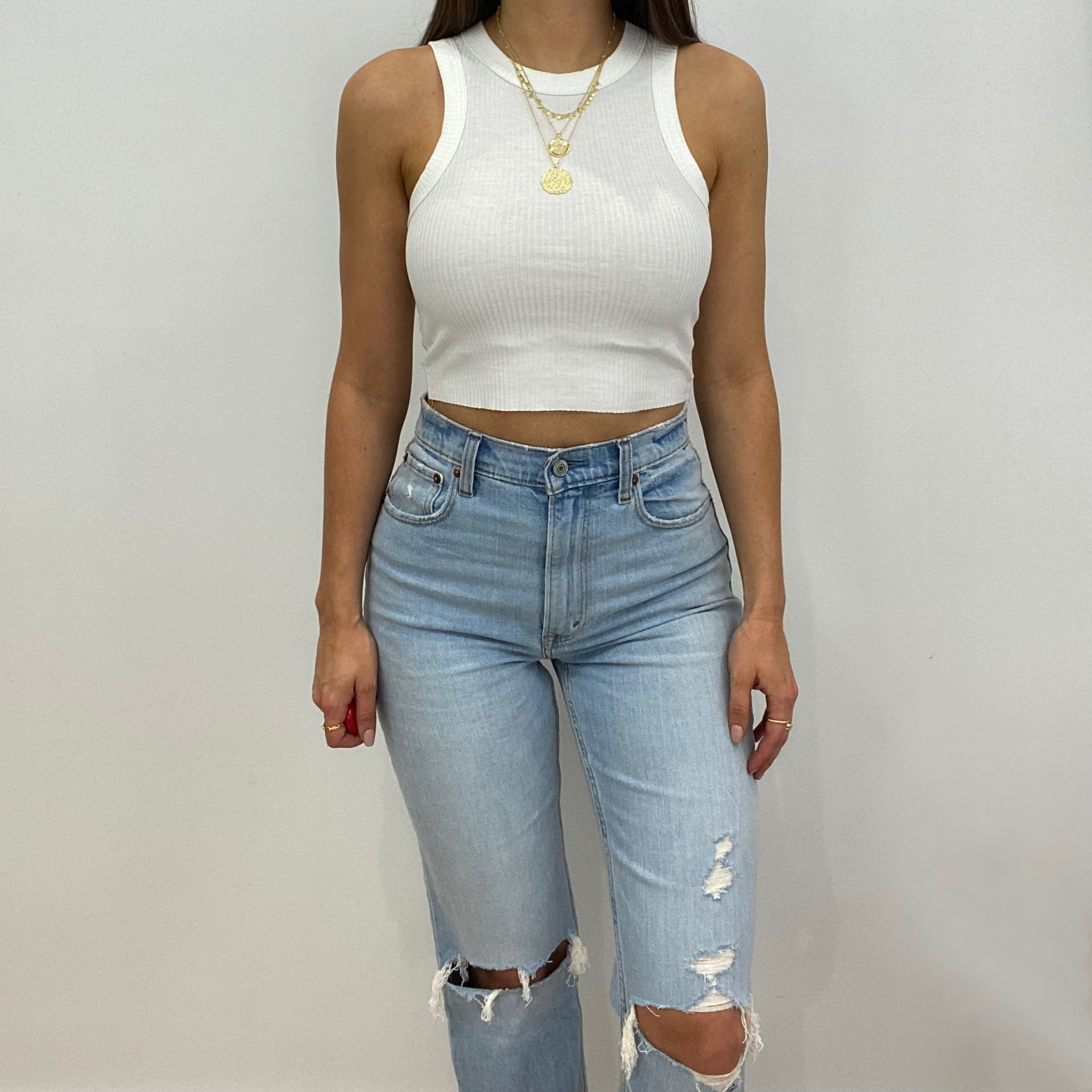 cropped white singlet