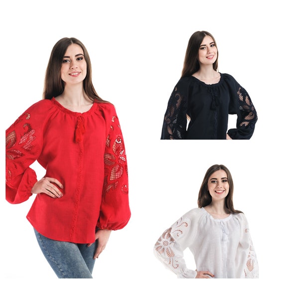cut work sleeve blouse