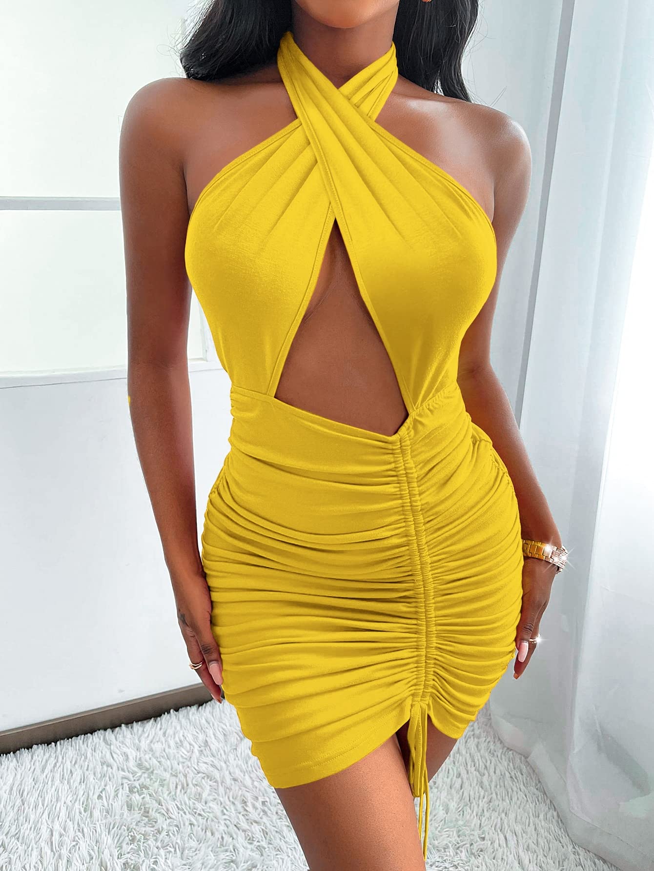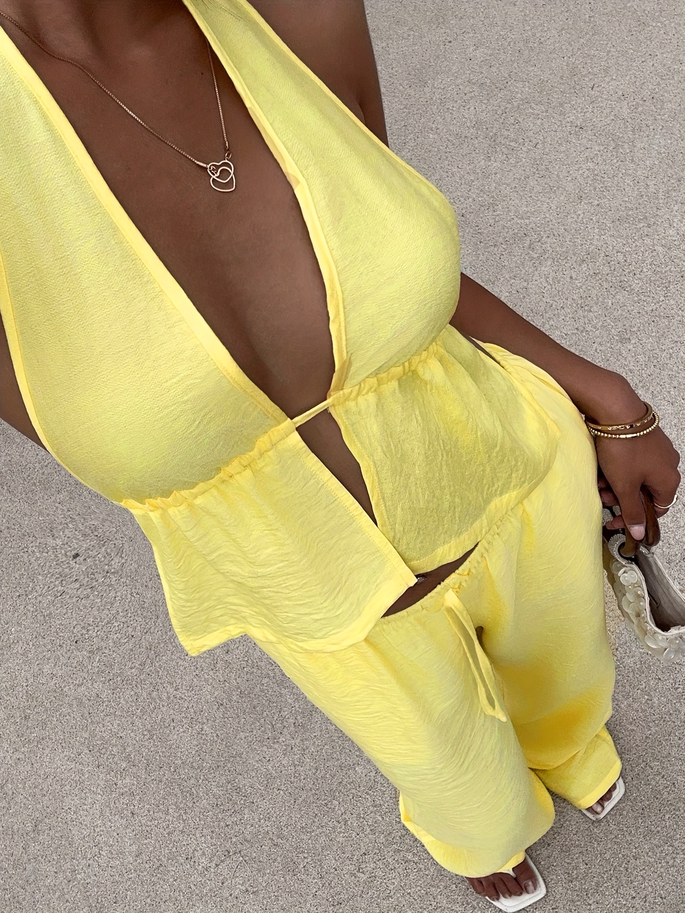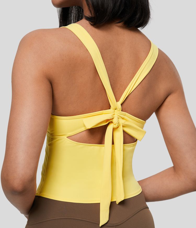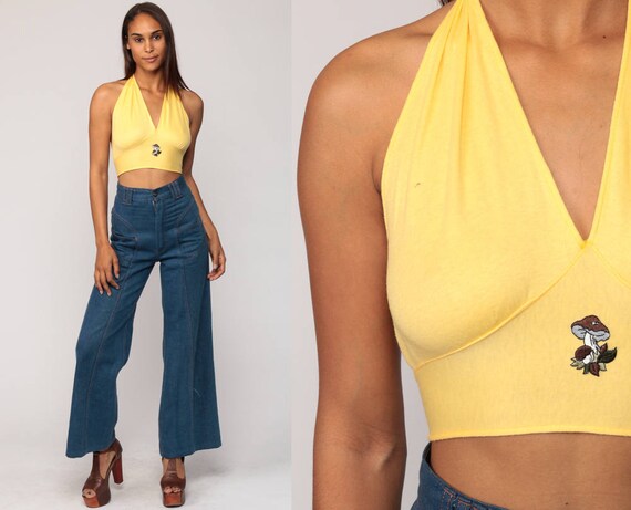 deep cut yellow halter top