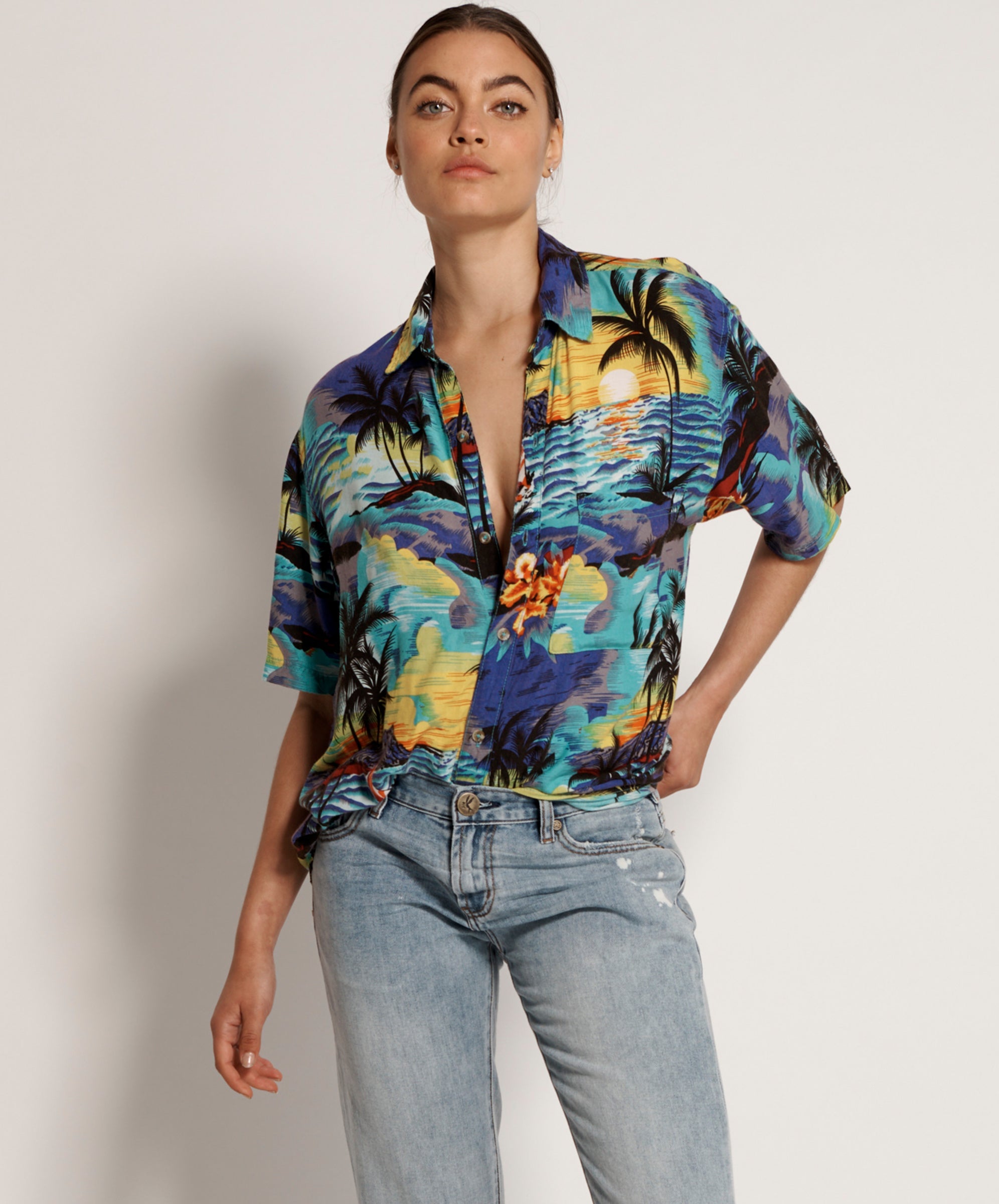 denim hawaiian shirt