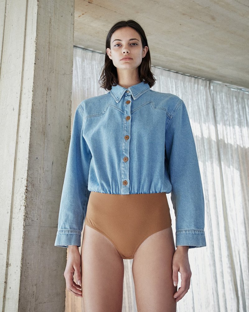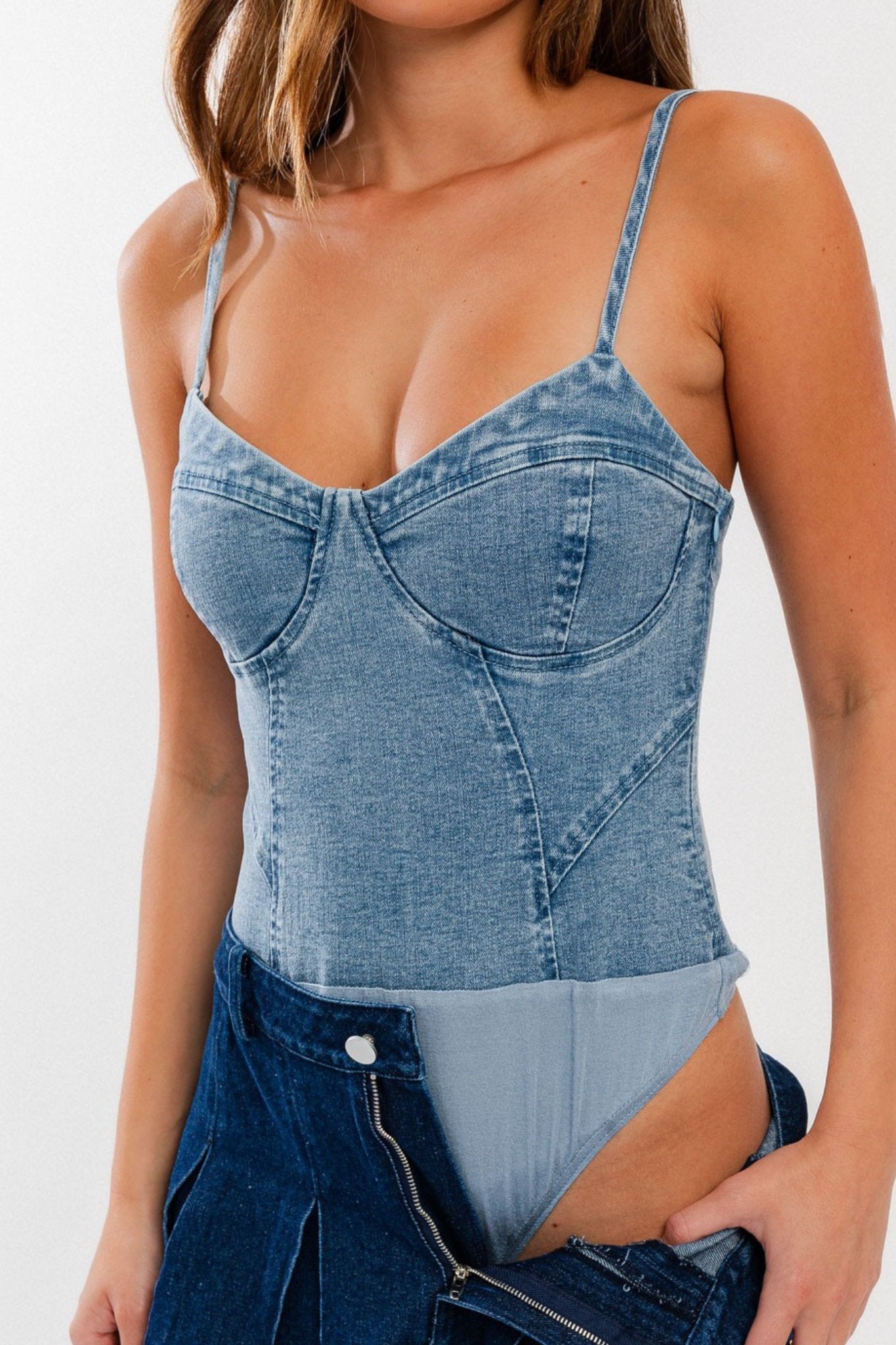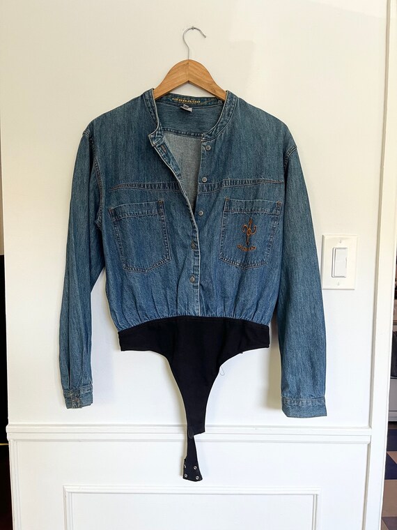 denim shirt bodysuit