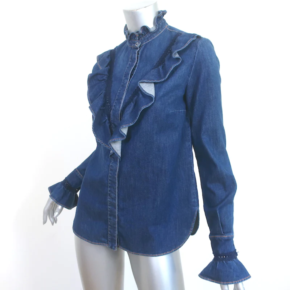 denim shirt with ruffles