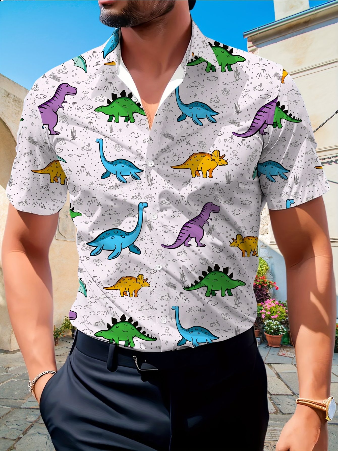 dinosaur button shirt