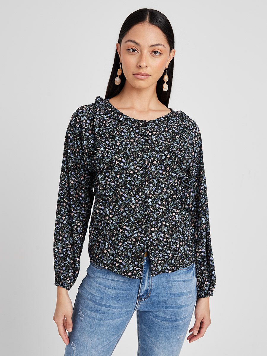 ditsy floral button front blouse