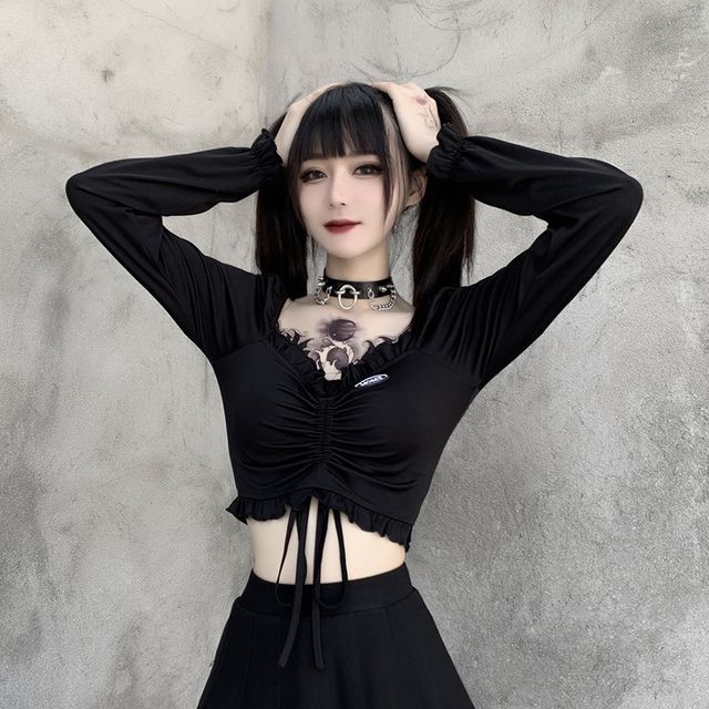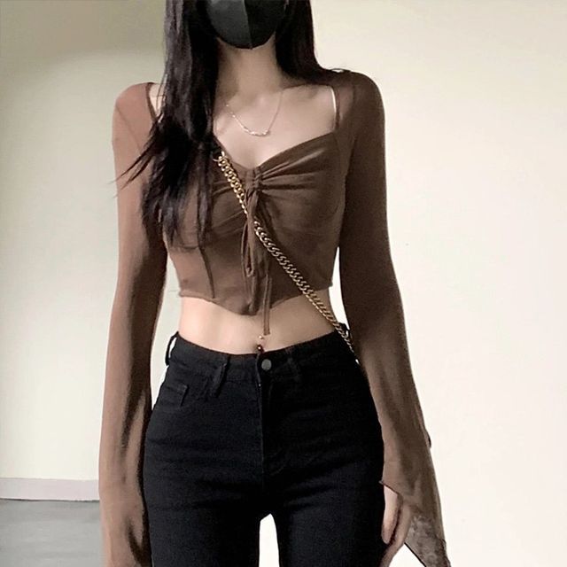 drawstring crop top long sleeve