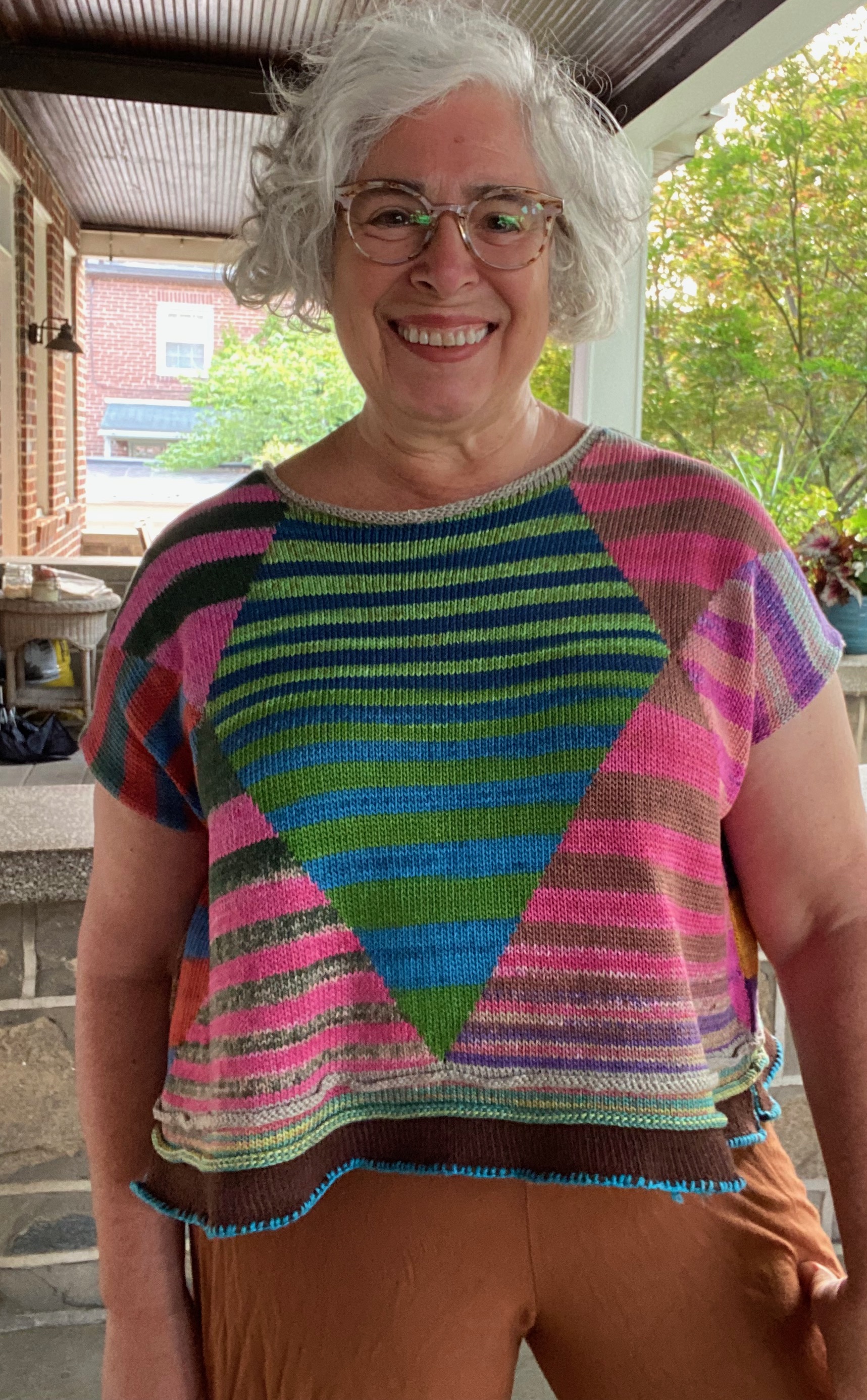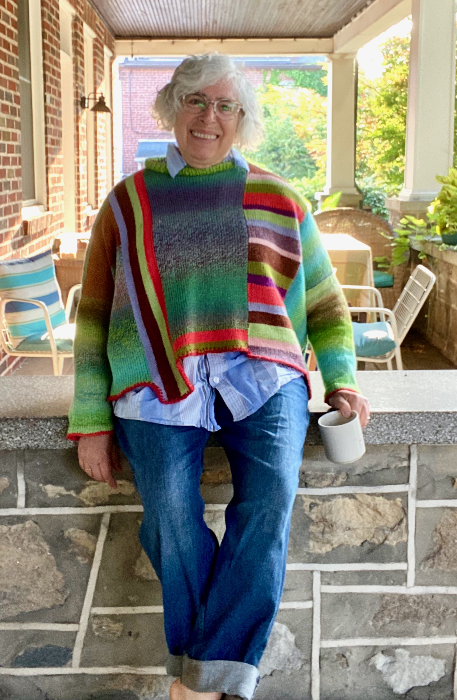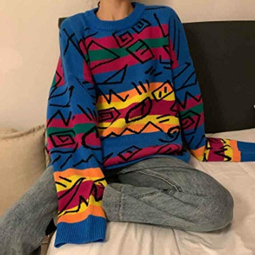 drop shoulder graffiti rainbow striped sweater