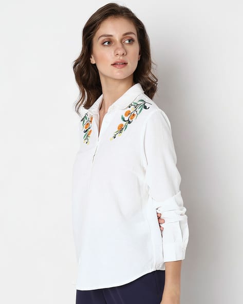 embroidered collar top