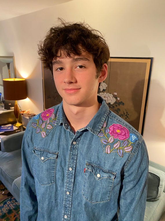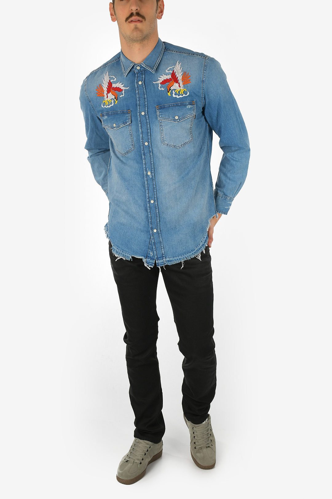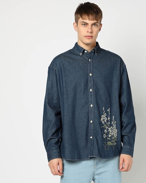 embroidered denim shirt