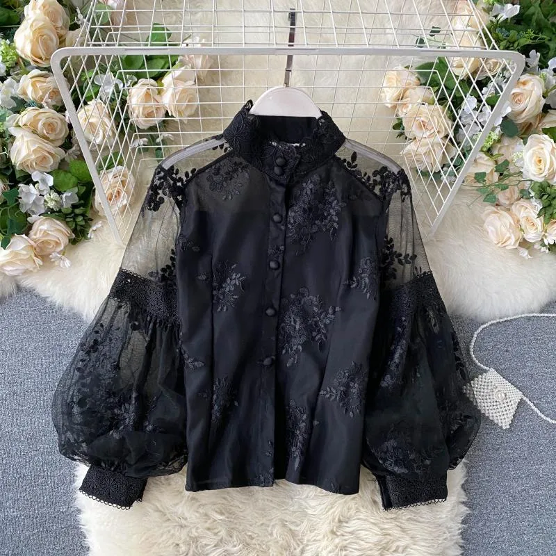 embroidered mesh blouse