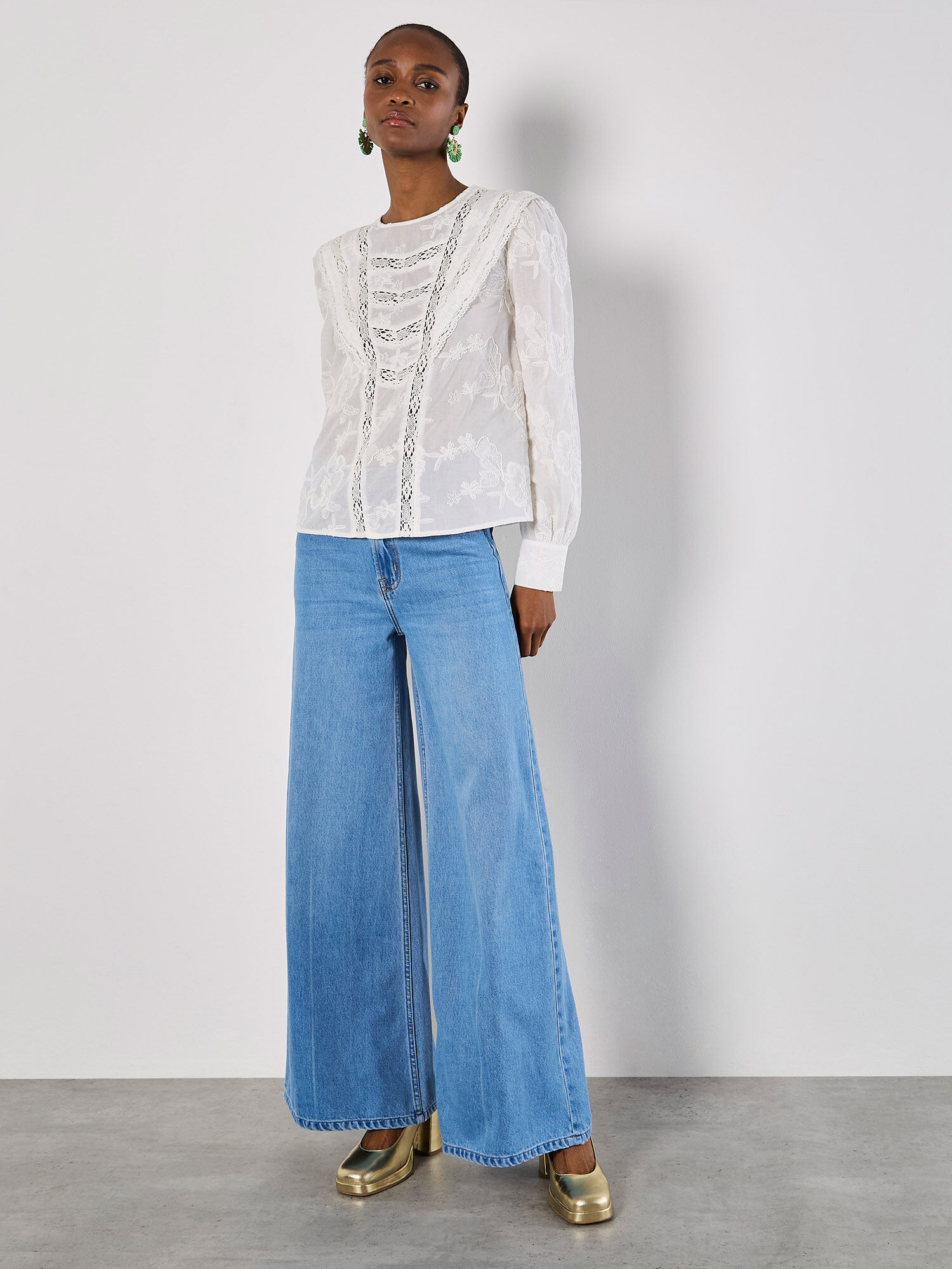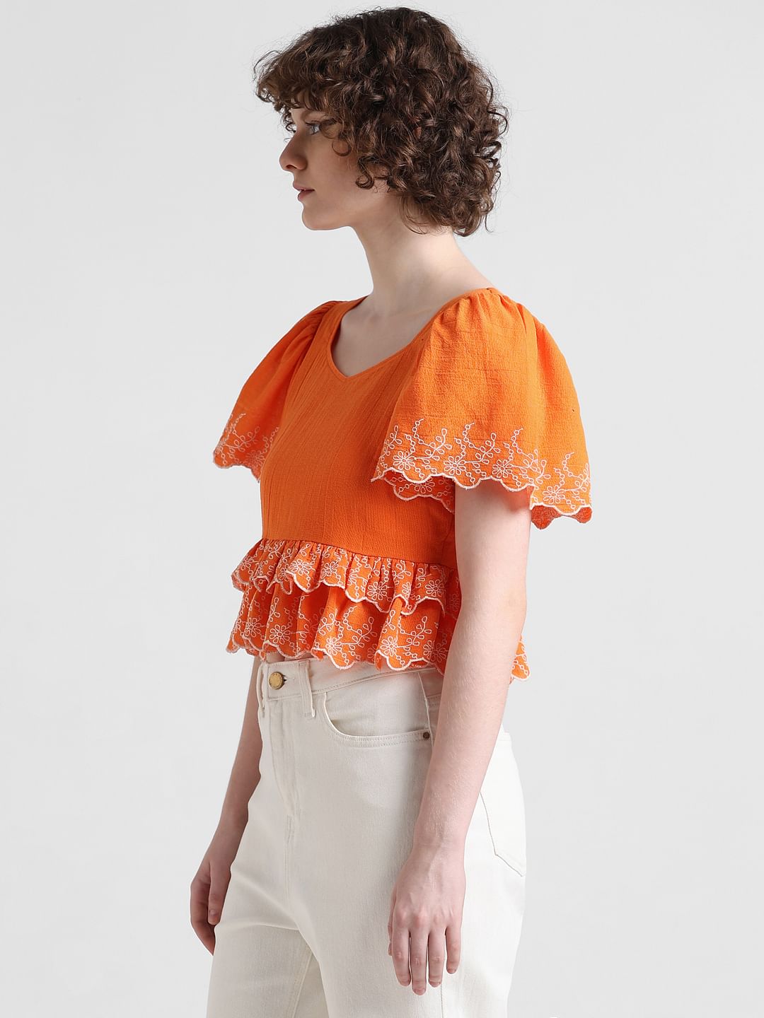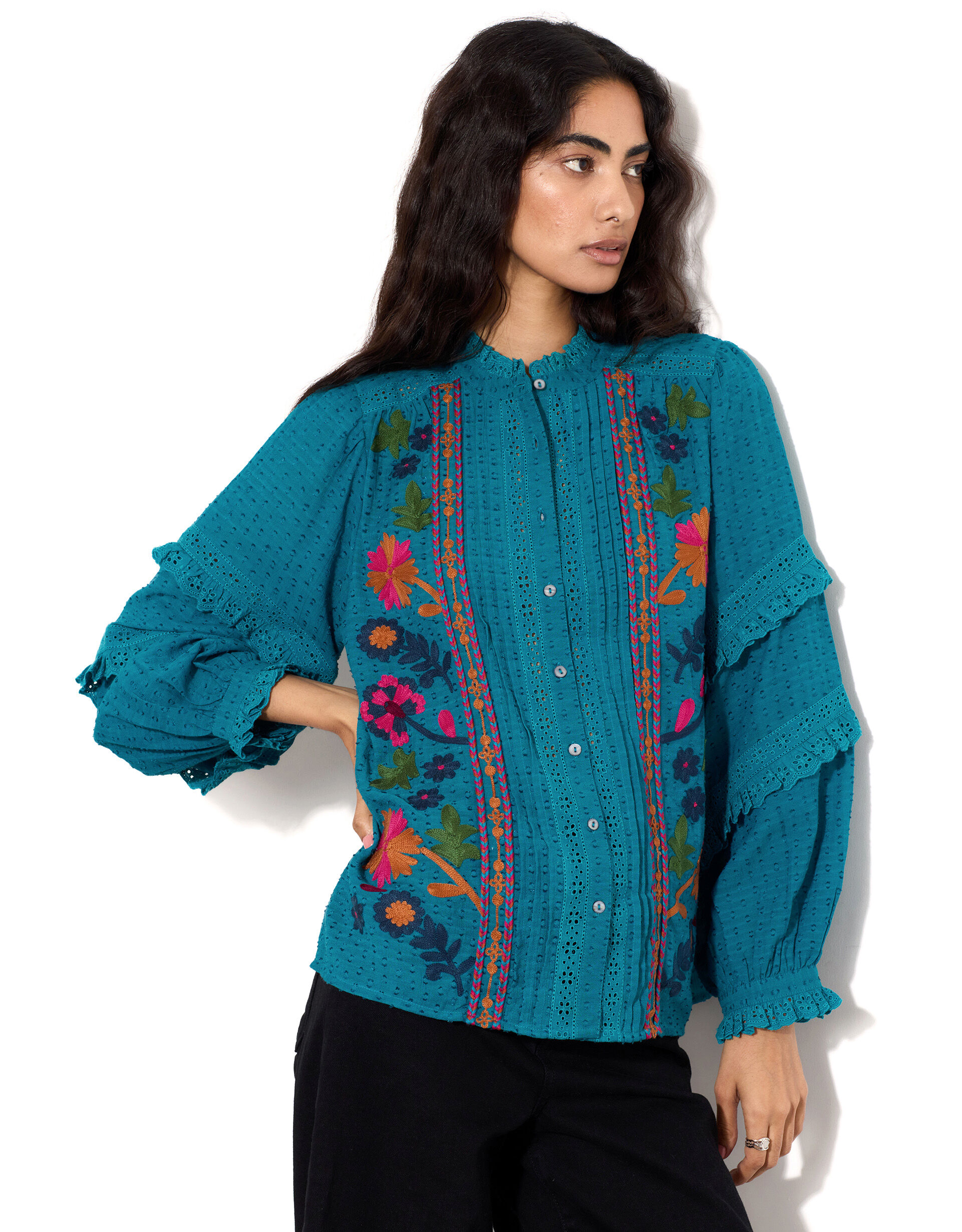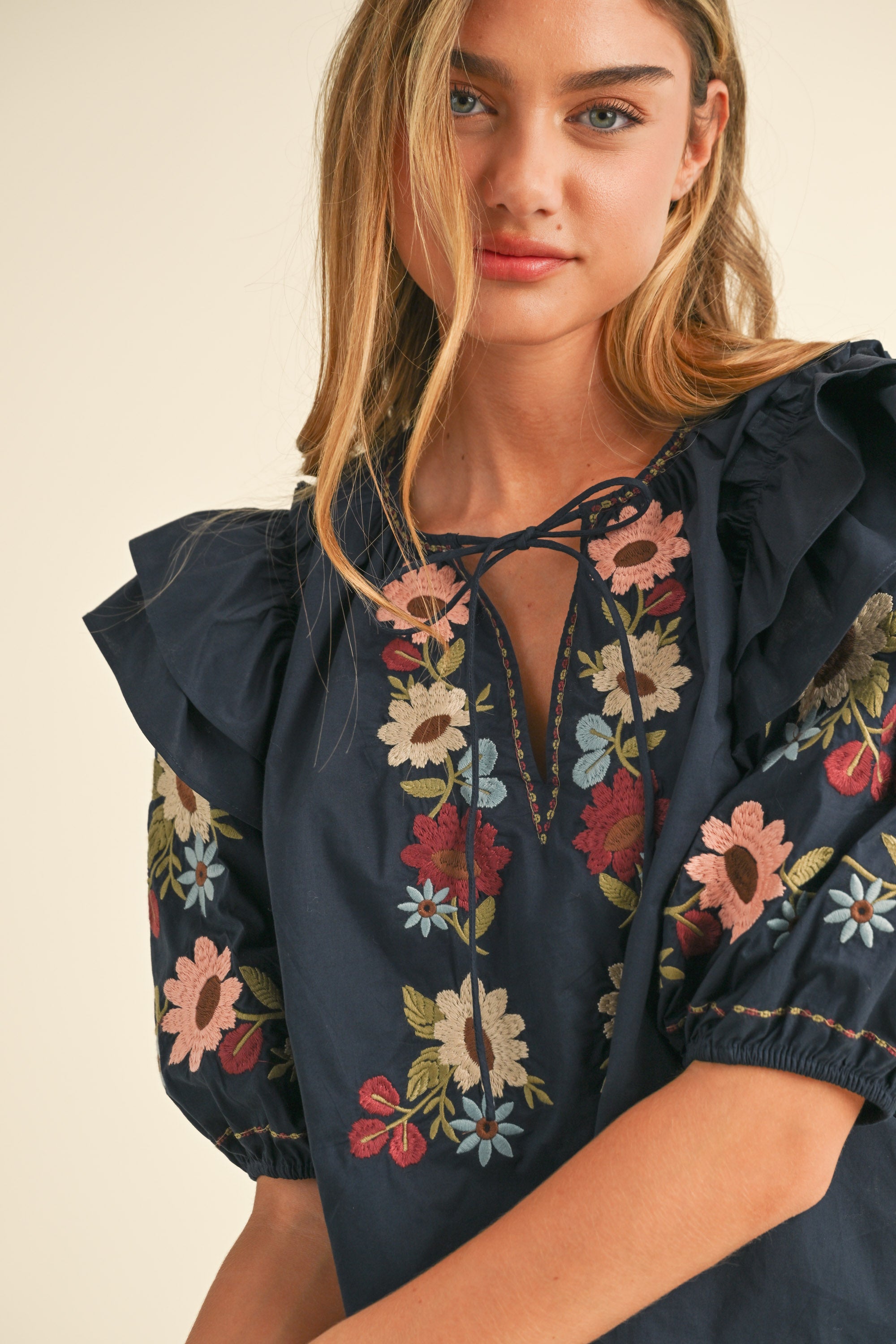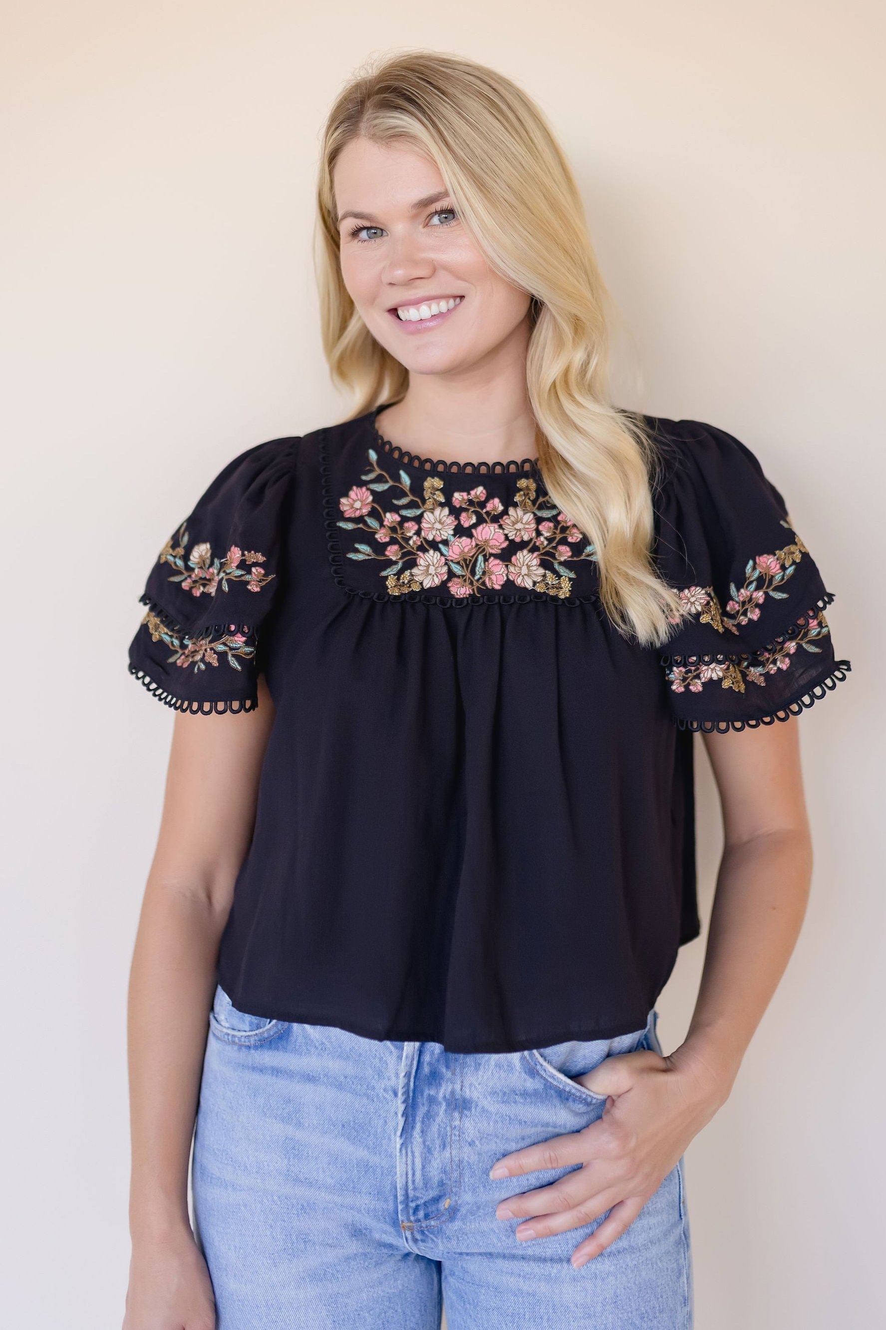 embroidered ruffle sleeve top
