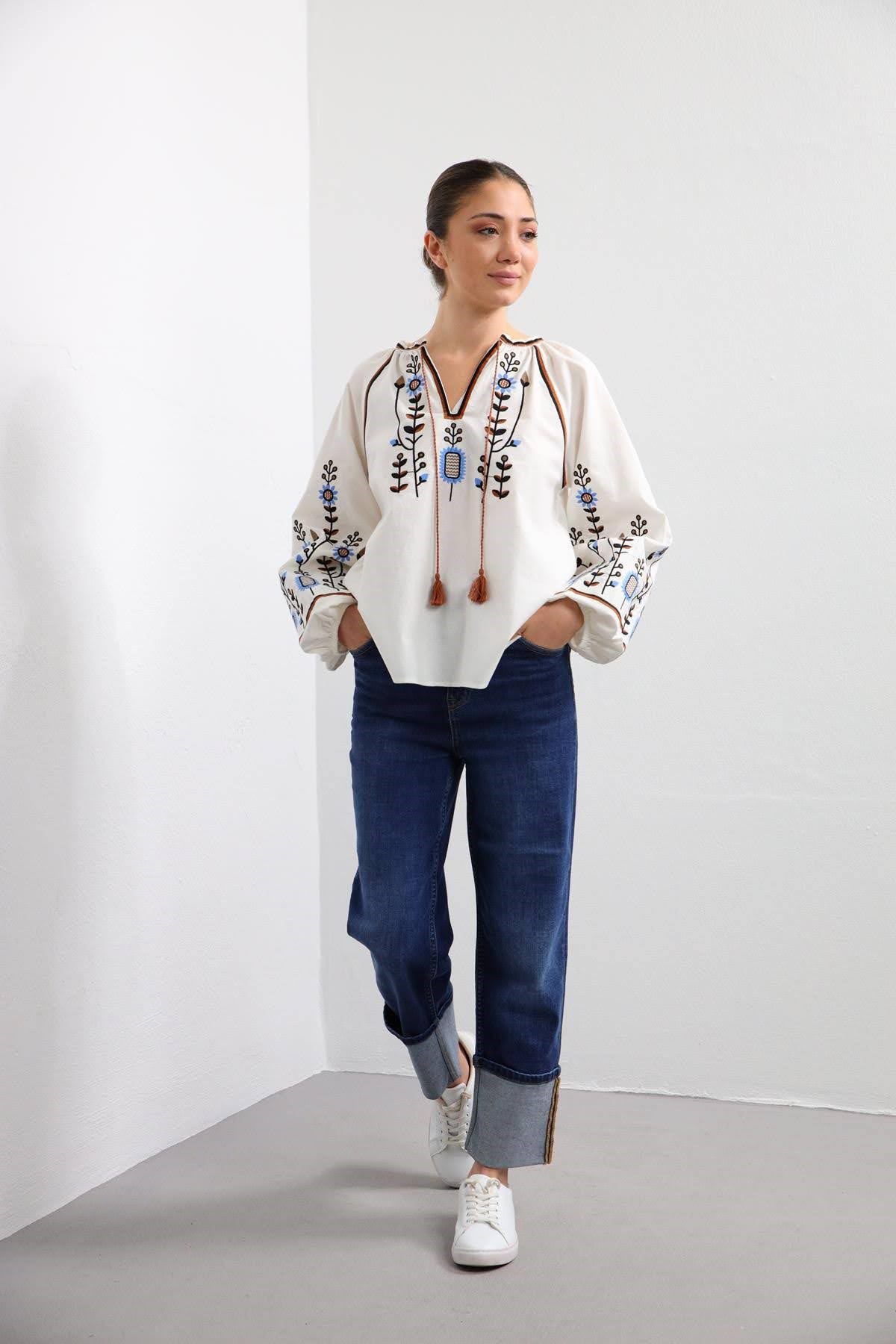 embroidered sleeve blouse