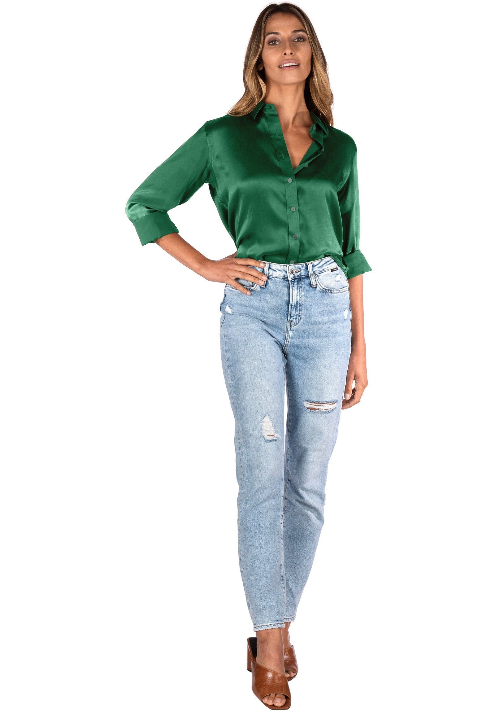emerald satin blouse