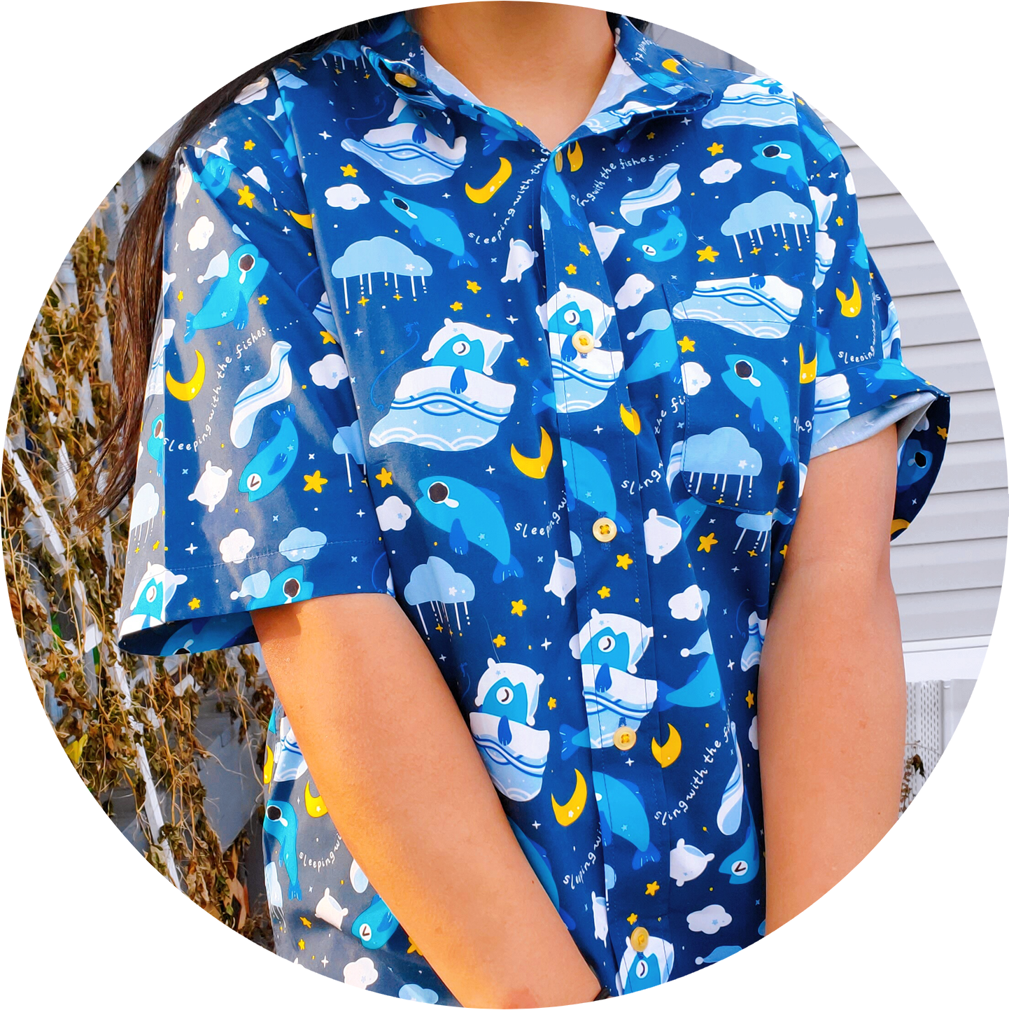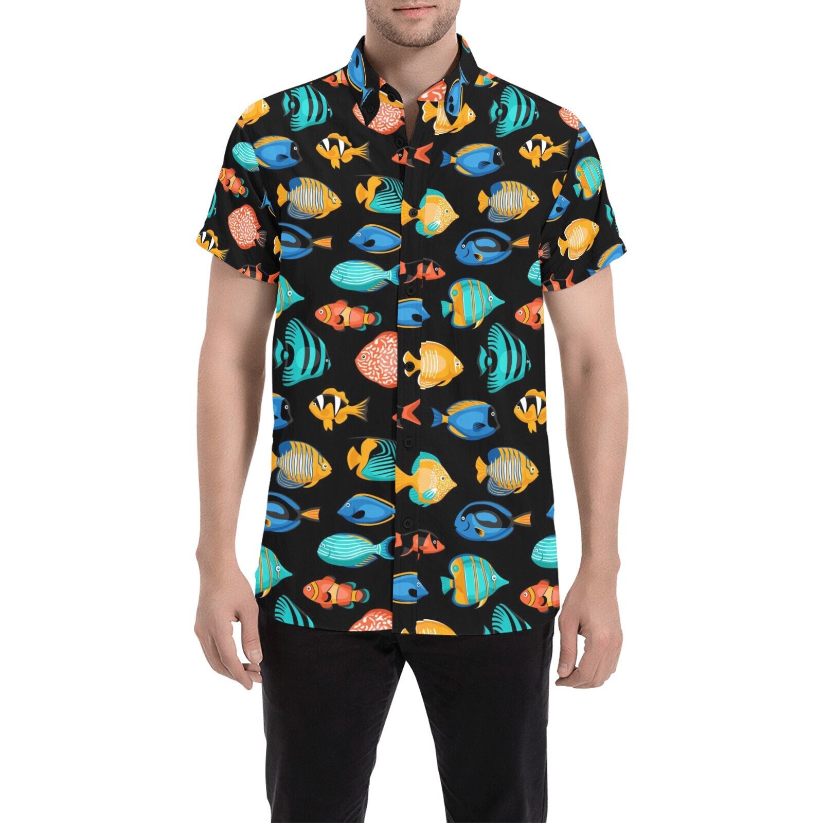 fish pattern button up shirt