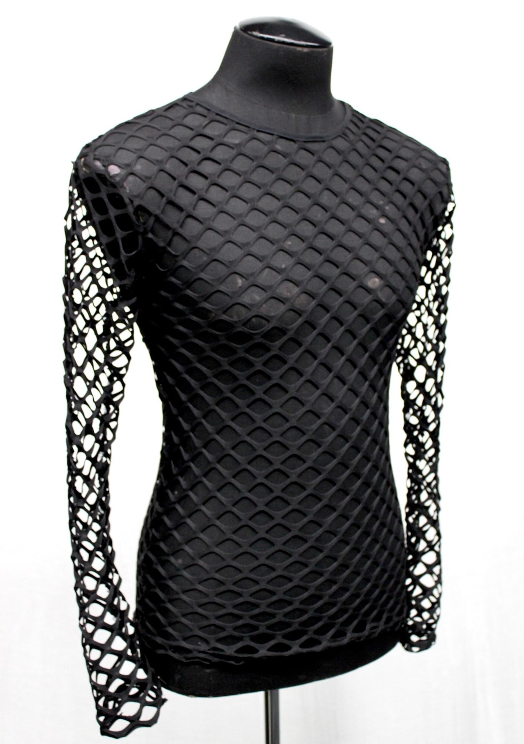 fishnet top long sleeve black