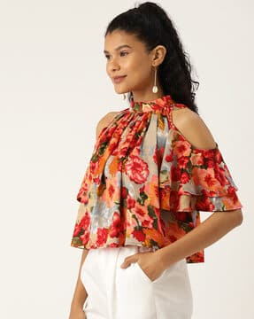 floral cold shoulder blouse