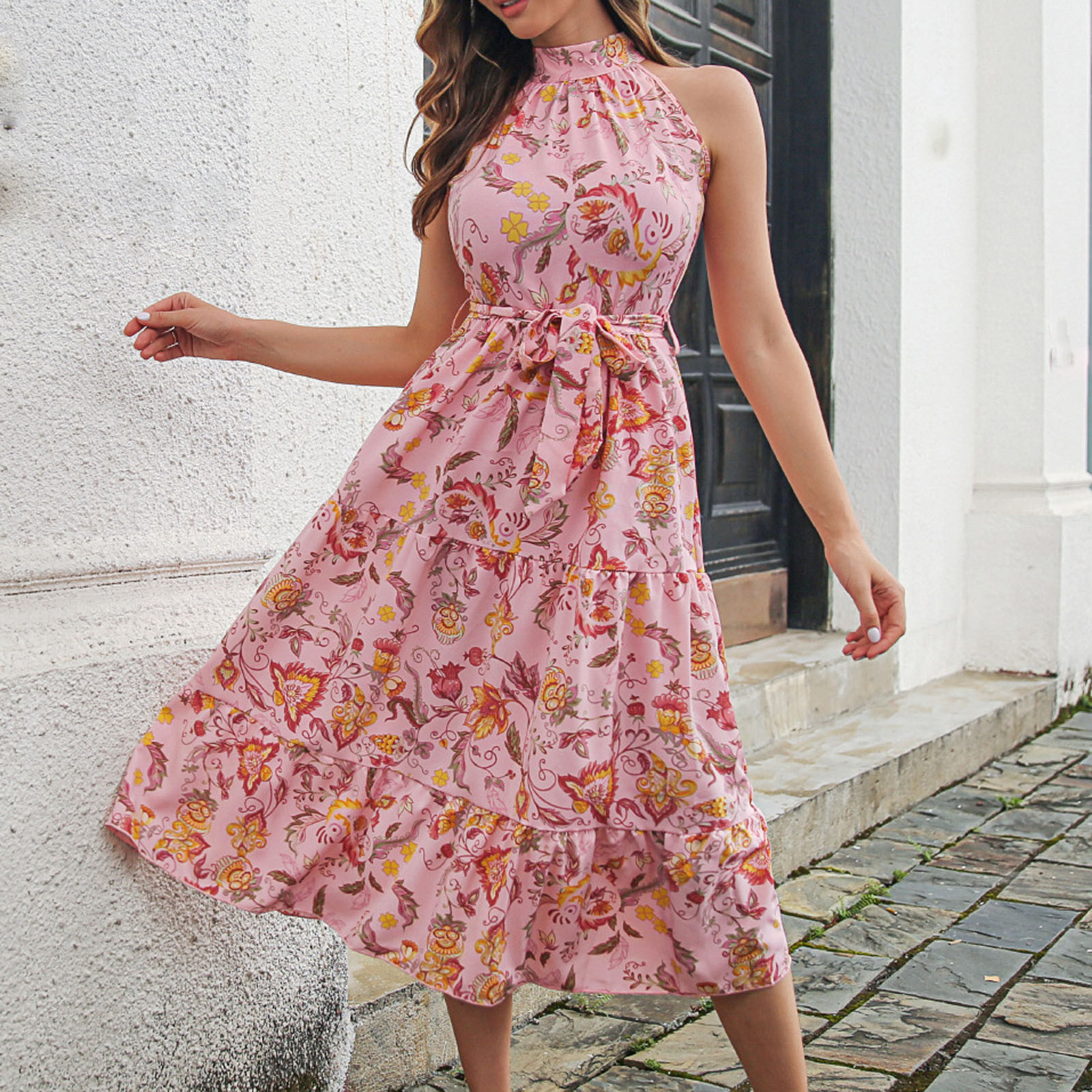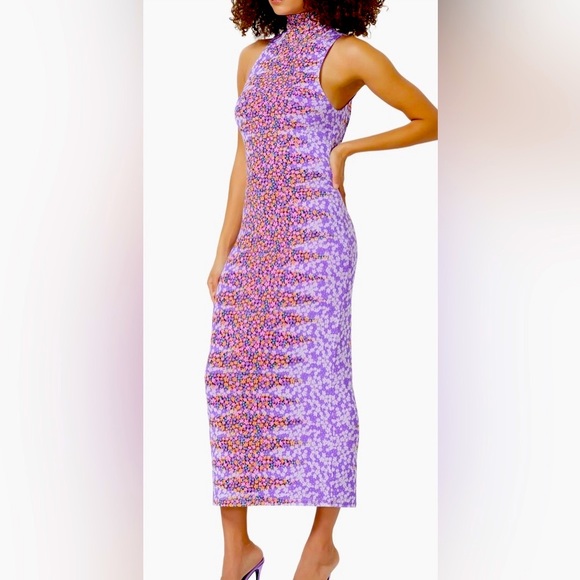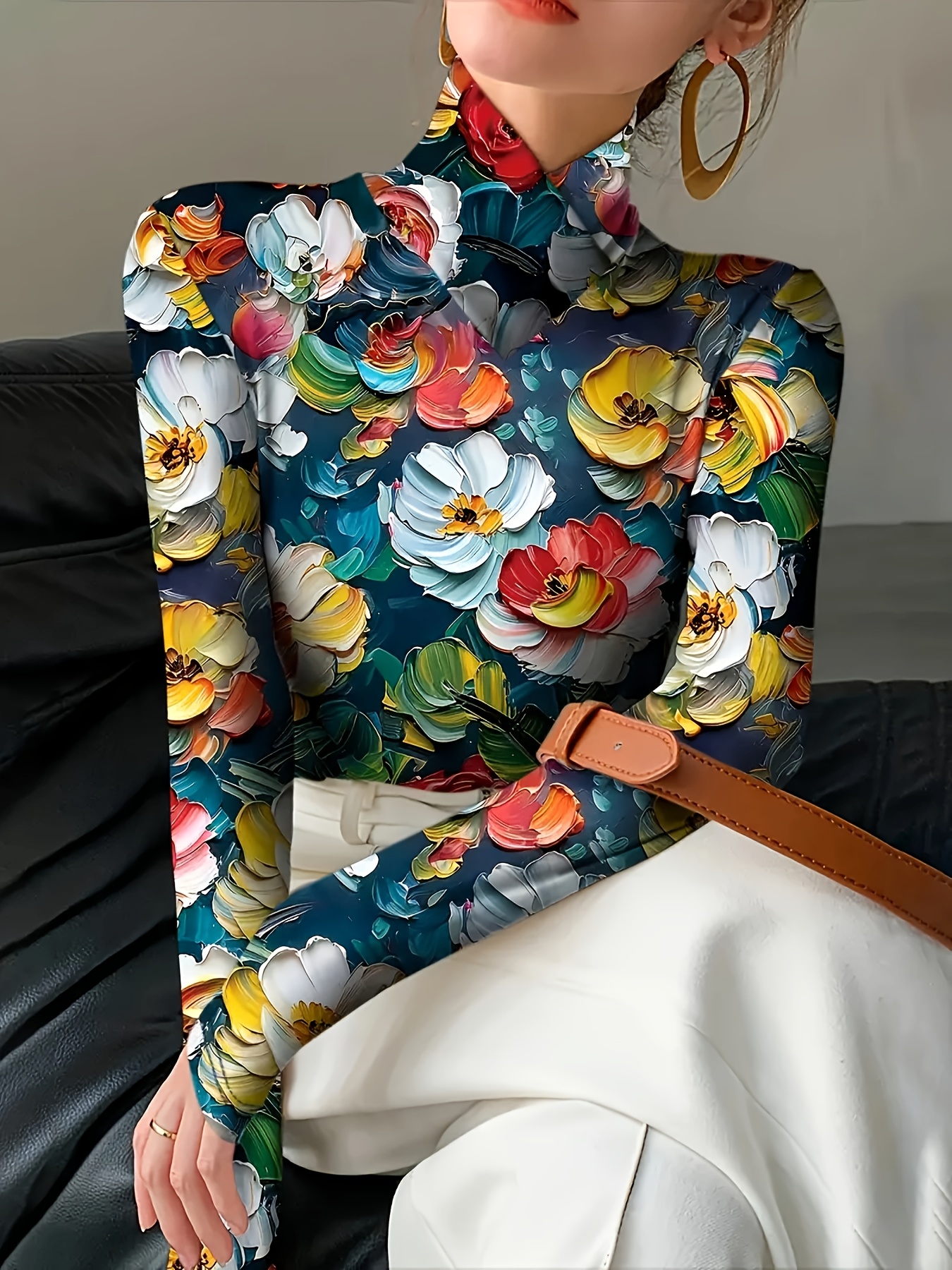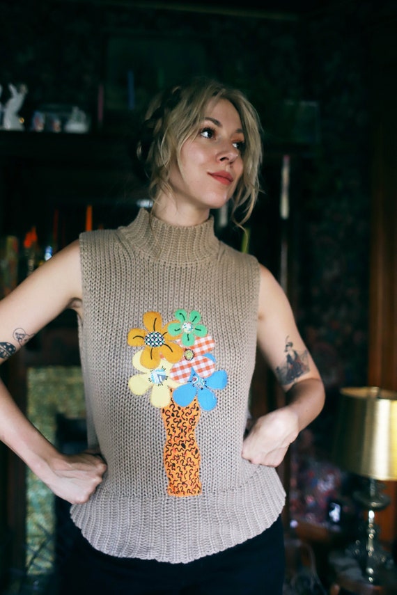 floral sleeveless turtleneck