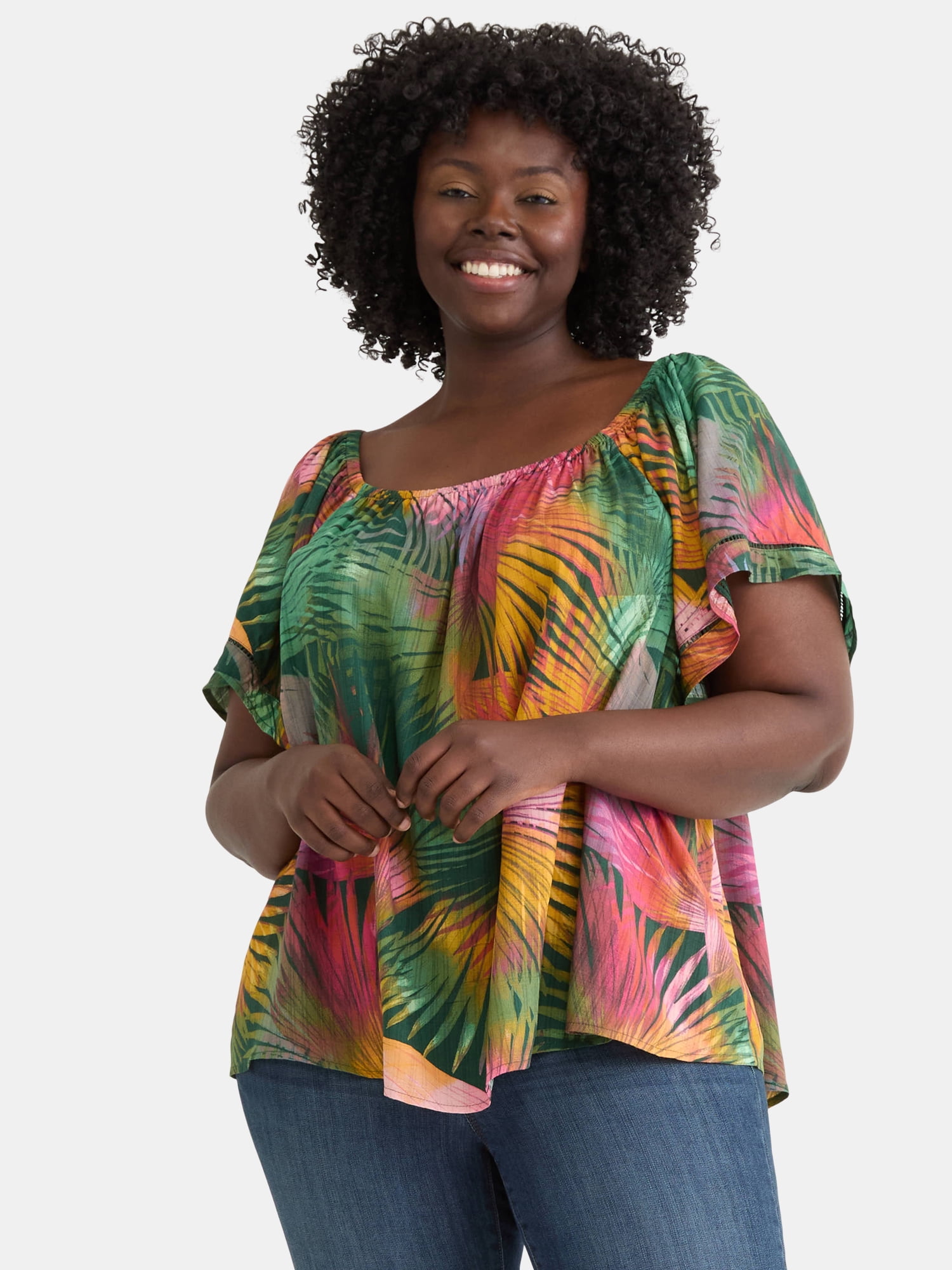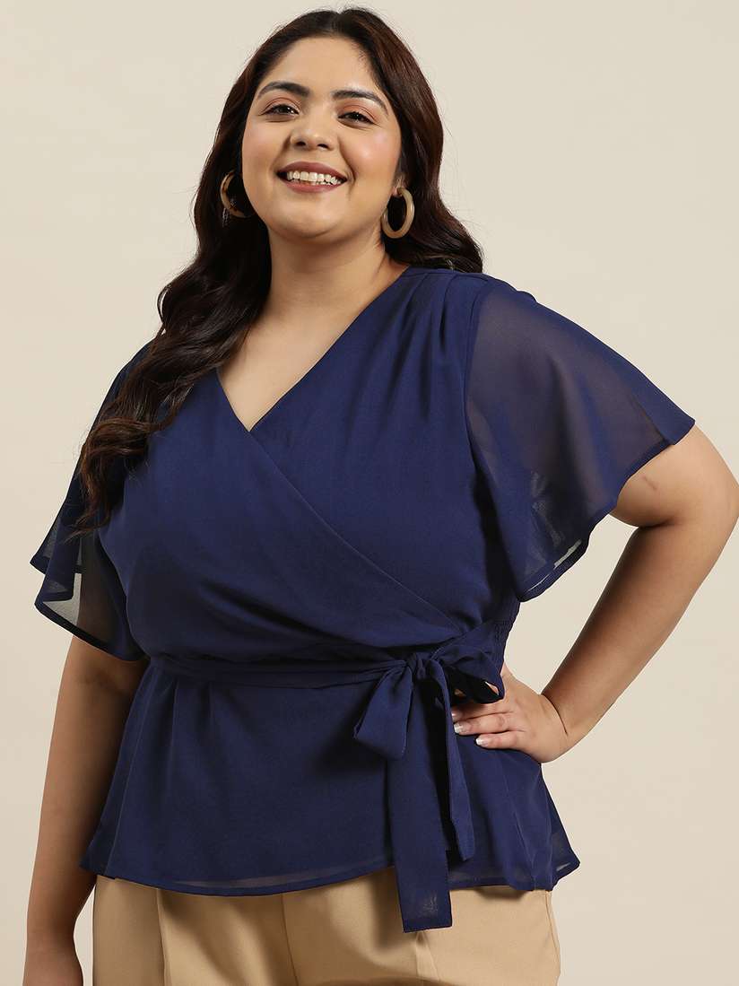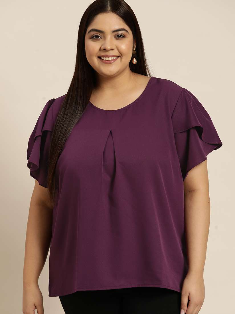 flutter sleeve plus size tops