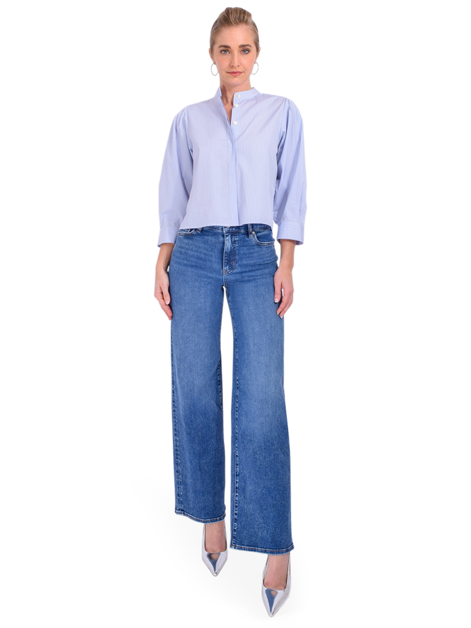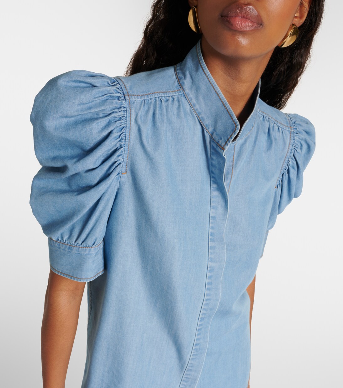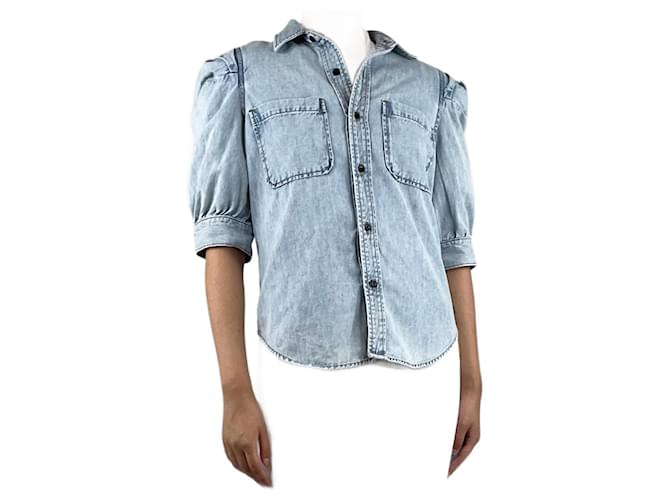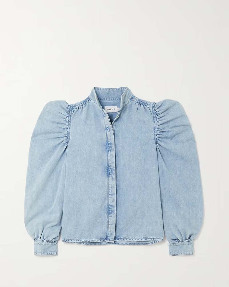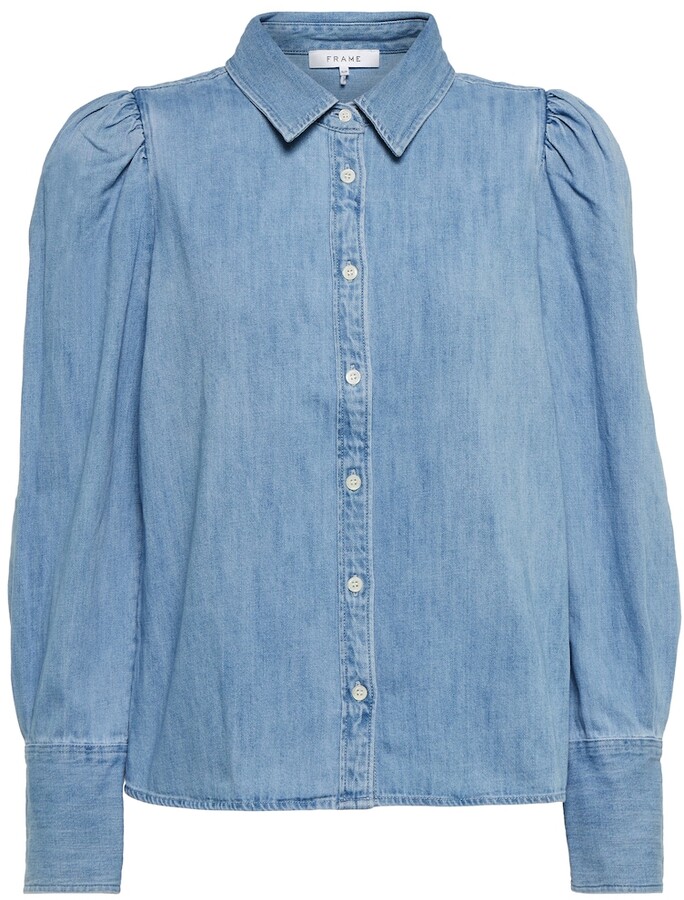 frame puff sleeve chambray shirt